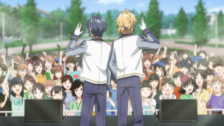 As for Yujiro’s development, we find out that he was heir to a Kabuki family and he gave all of that up to pursue his dreams of becoming an idol. Yujiro’s past has been leaked to the media and as a result becomes a bit more an issue for LIPxLIP to work through. But thankfully these two know how to play the cameras. Leaving the family was something he did because he saw the talent and skill of his younger brother, but he also realized that he wanted to become an idol on his own and on his own merit. For him, it’s family drama that has been aired out to the public. Though, it does seem like this impacts him on a personal level. He views himself as an afterthought in the family, but as Hiyori shares it’s clear that at least his mother still loves him dearly. I think this tidbit of the past was executed better than Aizo’s, but I truly would like just a little bit more.