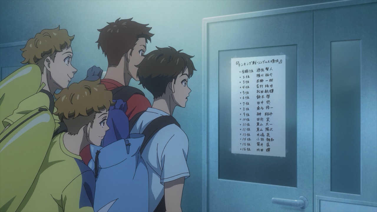 What a fantastic episode this week! I really liked how realistic the match and the outcome of the round-robin tournament was! It’s normal to start making sloppy mistakes as you grow more and more tired. We saw how Kouki’s legs almost buckled under him during the match, which led to that awful muscle spasm. (Man that made me wince because that shit hurts like a bitch.) And Ryo made some poor mistakes like failing to get the birdie over the net when it was his turn to serve.