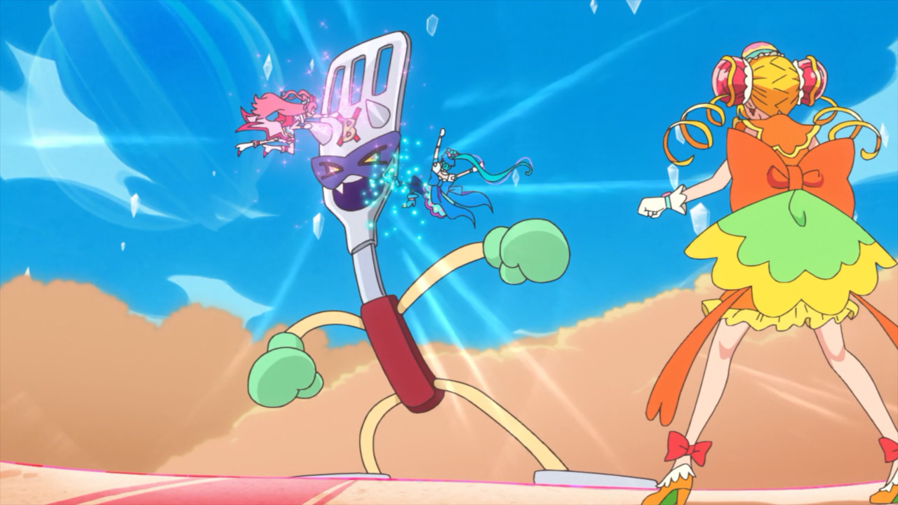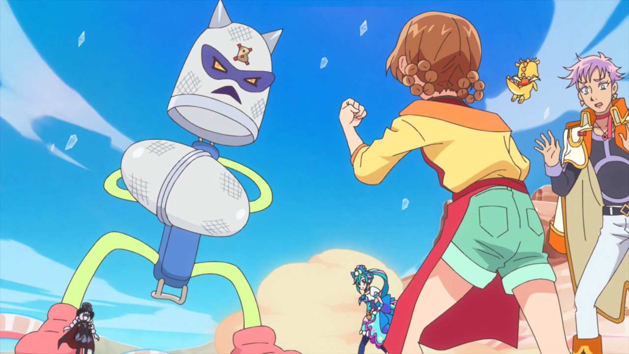 Yeah. Unfortunately that’s what happened to one of the main Cures in TroPri, Cure Coral/Sango. She only ever gets three focus episodes, two of which only happen long after the halfway point of the series, and she barely gets so much as an arc. Most of the time she’s relegated to living background space, and it sucks because she has such a cute design and a realistic character flaw that the series could have utilized wonderfully! But nope, gotta focus on the snotty mermaid and the overgrown five-year-old high on sugar whose only purpose is to scream a lot and shout an annoying catchphrase!