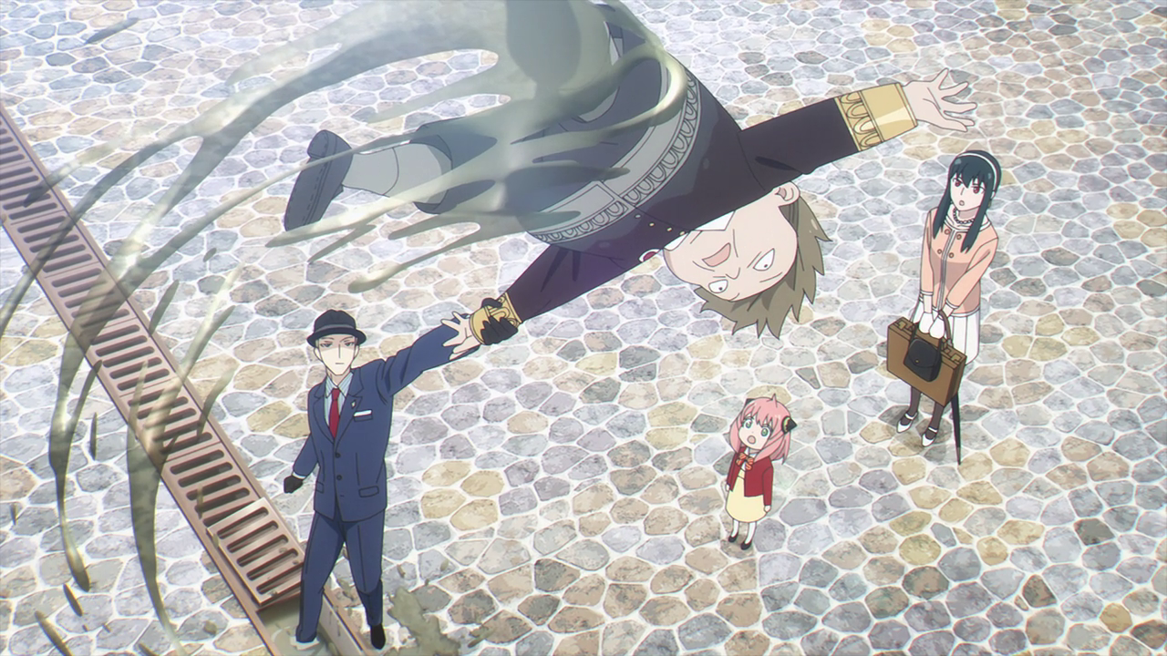 I love how they initially made out Henderson to be the antagonist of this episode with how he was trying to thwart Loid with different tests. Even his design looks like that of an antagonist with that single eye-piece and mustache/beard he’s got going on. However, this series does a complete 180 on him in the end. Despite his upper crust attitude, he is still a good person at heart. Even he wouldn’t stoop to putting families in danger just to test them, much less make a poor child cry at the expense of their feelings of a dead parent. And I’m so glad that he was the one to punch that slimy interviewer in the face rather than Loid. If Loid had been the one to punch him, he would have set a bad example for both Anya and his conduct. But because Henderson was the one to do it, he was able to have a bit of character growth to not curry favor from the higher ups but to stand up for children in this school if unfair treatment is being given to them. And for that, much respect.