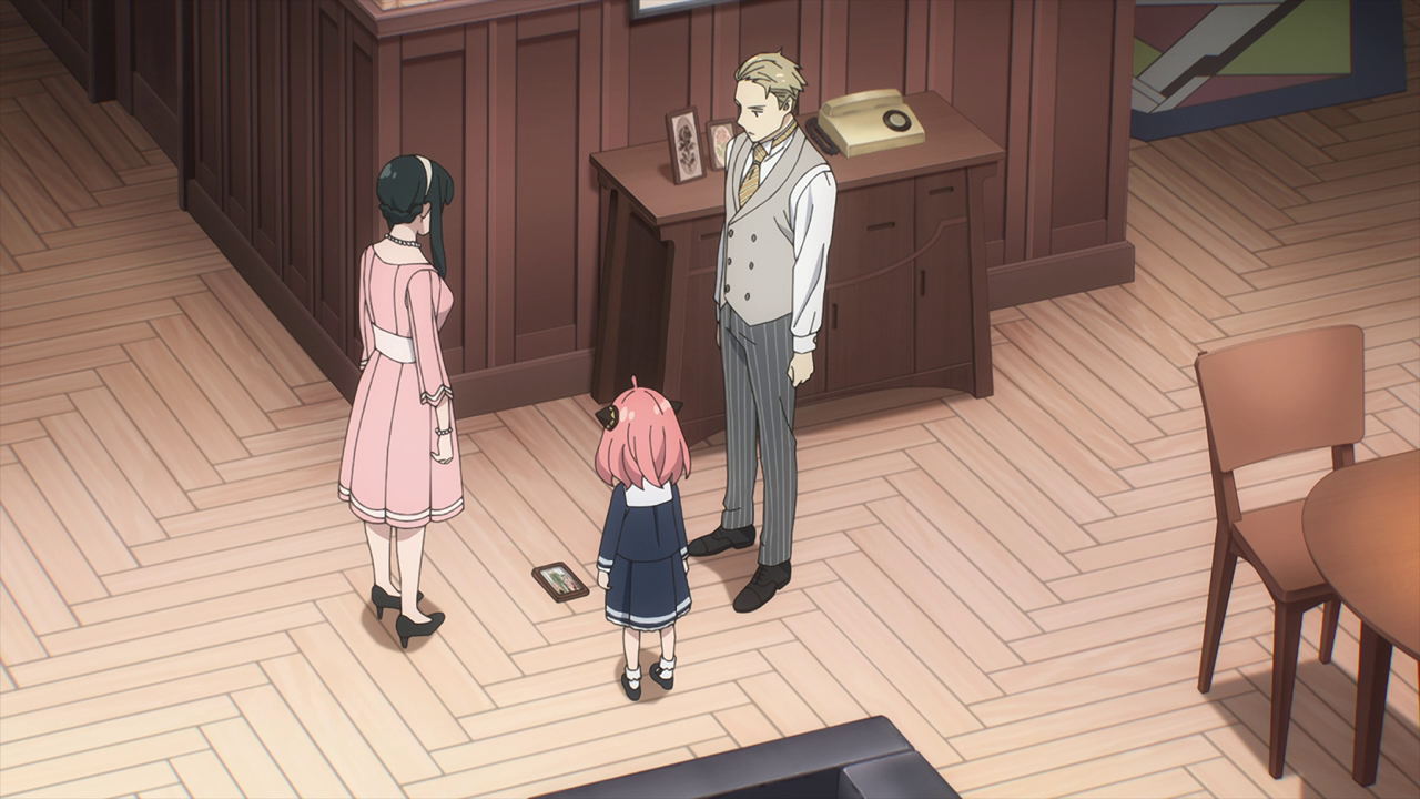 Loid has been changing since the first episode, but I feel like this episode really emphasized just how much of him has changed over such a short amount of time together with both Anya and Yor. Loid usually acts rationally and level-headed, hardly ever reacting emotionally. However, despite their family being fake and having spent little time together overall, it seems that Loid is unintentionally getting attached to them. Not only was he quick to defend Yor from one of the interviewers, but he actually felt irritated over her being unfairly criticized. Even in that short amount of time of knowing her, he’s already starting to get emotionally attached. Just freaking get married for real. And then with Anya, despite telling himself to stay calm and let the interviewer slander them, he chose to the role of a father over his role as a spy by reacting emotionally and nearly punching Swan in the face over making Anya cry with an insensitive question. Which I can hardly blame him for with how malicious that interviewer was being. Props to him for choosing to stick up for Anya and making a very valid statement that if this is the school’s way of handling a child’s feelings, this is the wrong school.