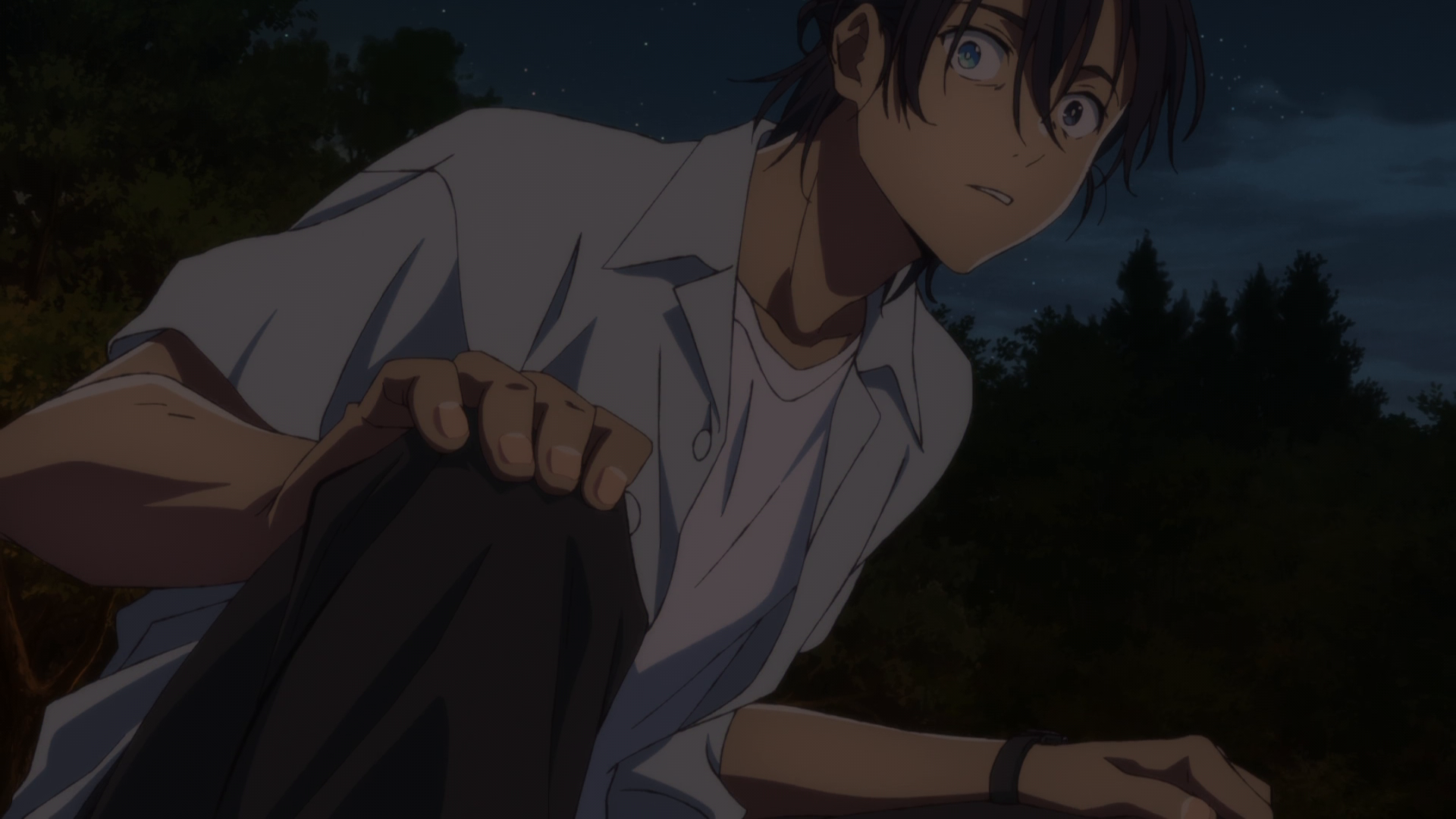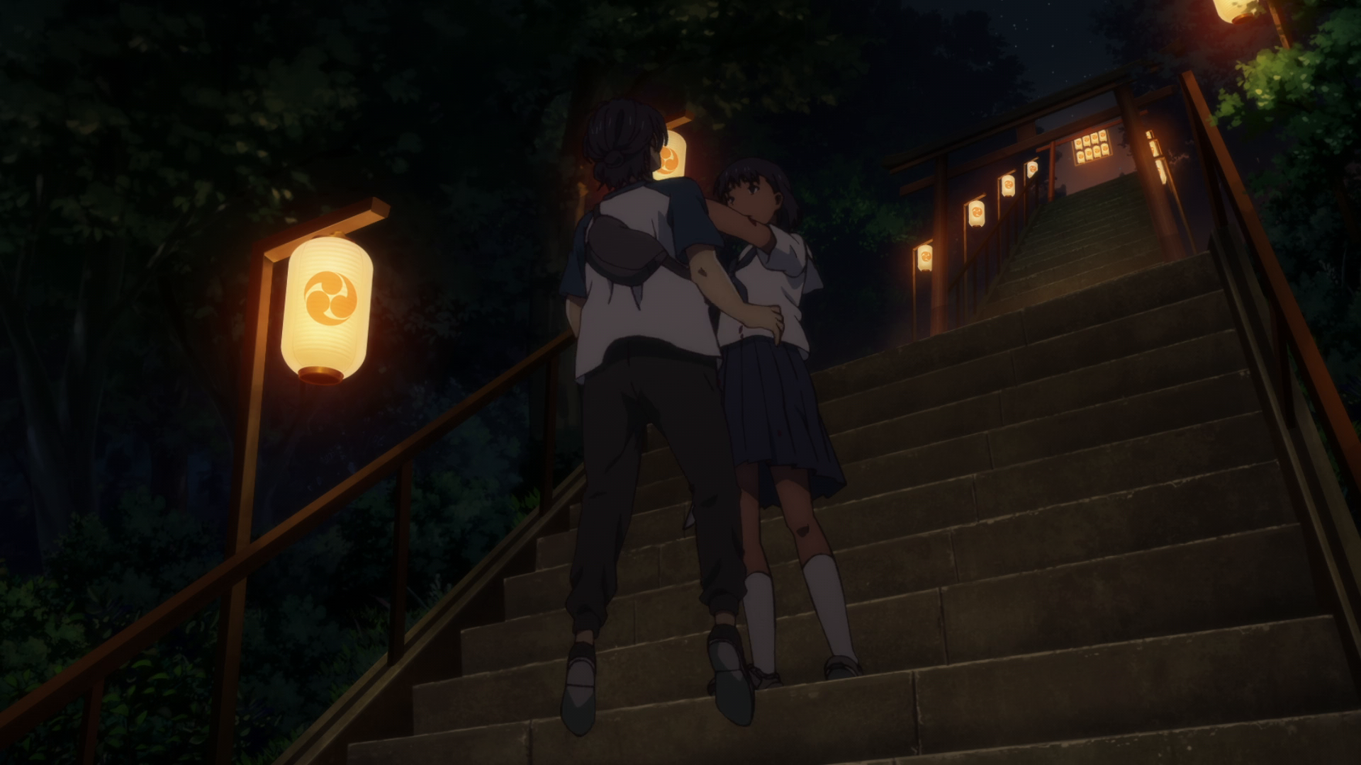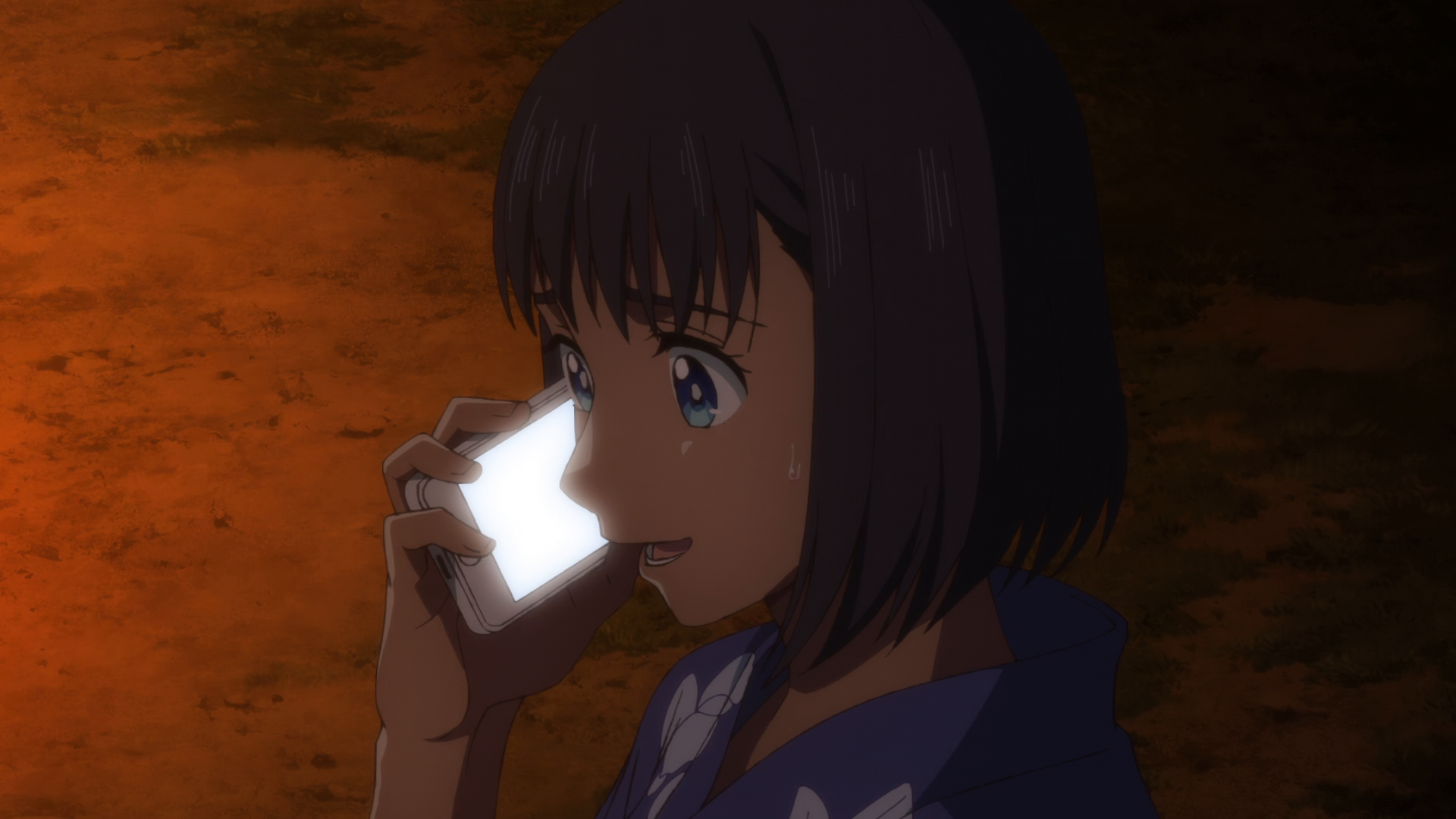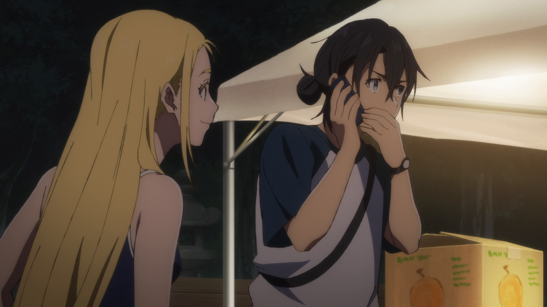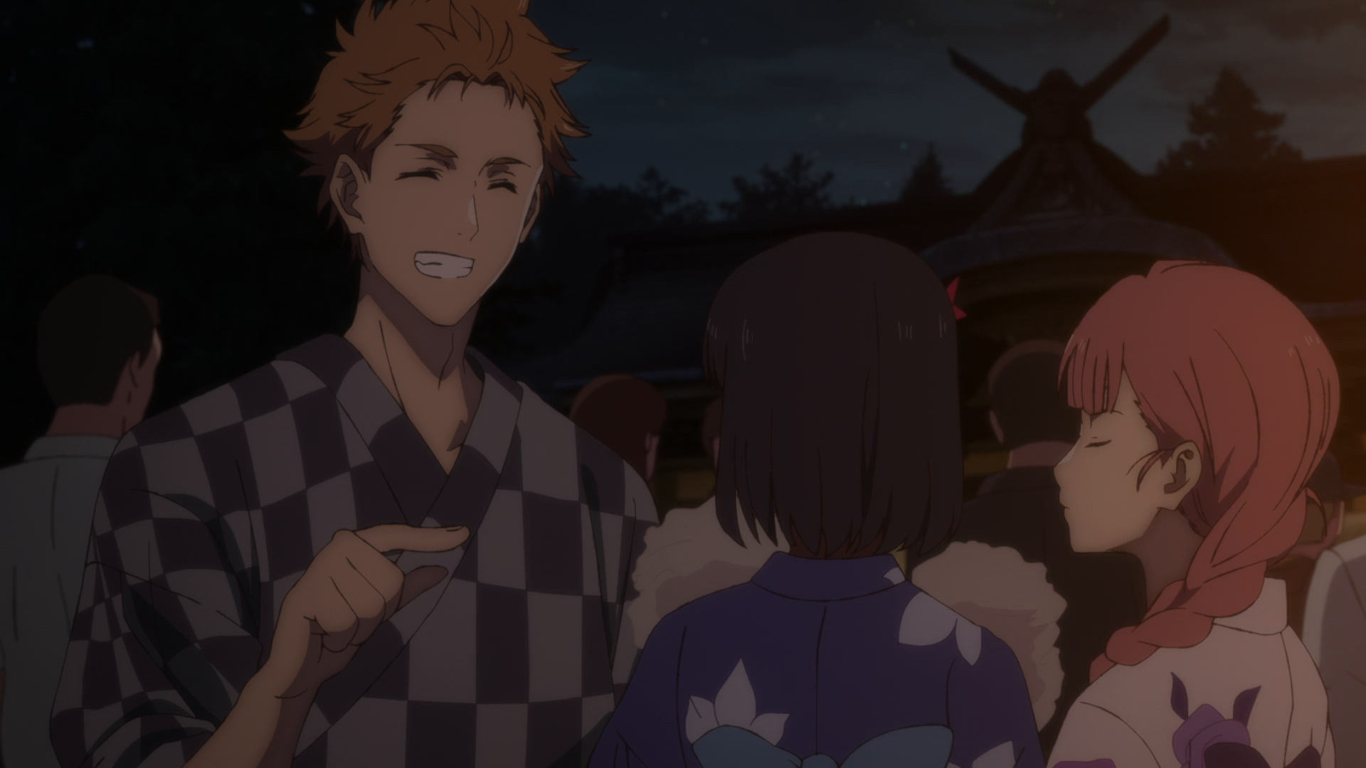 I’m not sure if “ghost” is the right term or not since she’s seen by other people, namely Shinpei and the whole friend group. That’s why she could easily be a Shadow, or something in between. Now knowing that others can see her, I do find it really strange that no one else at the festival said or reacted at all at the sight of her. Considering it’s a small community and the fact everyone loved Ushio, I find it hard to believe. That and again the super lighthearted tone in most of the episode was very jarring. Again this was a weird episode. Here I am on edge and we got physical comedy and slapstick in between. Could have been handled better.