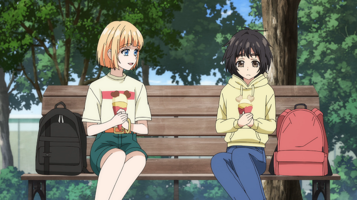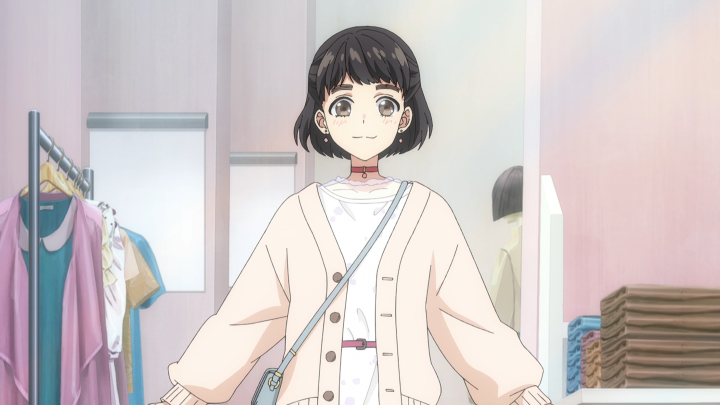 All around the crepe scene was incredibly cute and heartwarming because even though the two of them had just met, they became quick friends and really dove right into their insecurities. I like that Hiyori conveyed her worry about being an extra and that she’s not fit to be the heroine, and the girl, Mona, is able to share in those stressors. Despite Hiyori seeing her as really cute, Mona hadn’t really visualized herself that way because of her experiences and comparisons to those around her. So, it was ultimately really refreshing when the two declared that they were going become Heroine’s anyways! I was a nice way to have Hiyori’s shift to get into fashion be a choice that she wanted rather than it having to come in order to impress someone.
