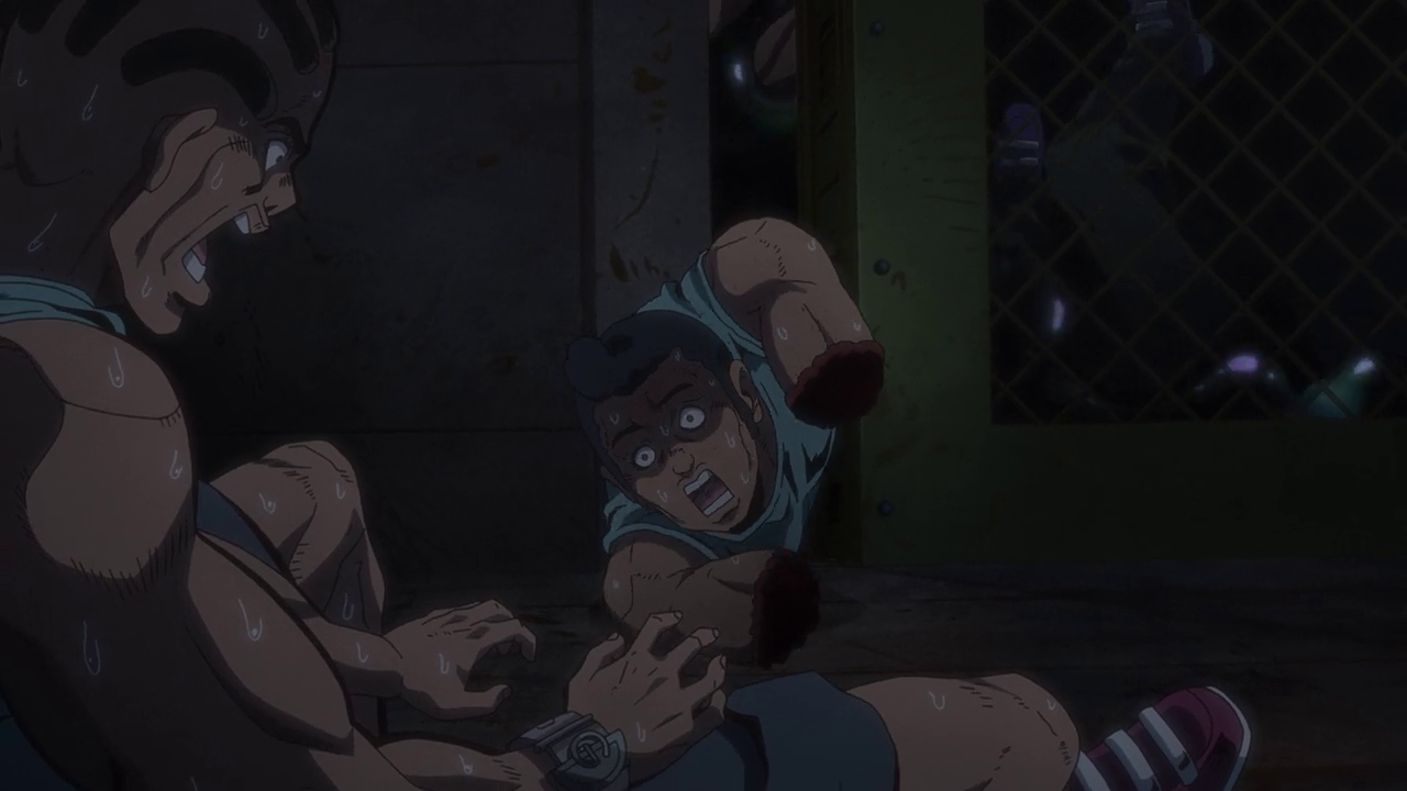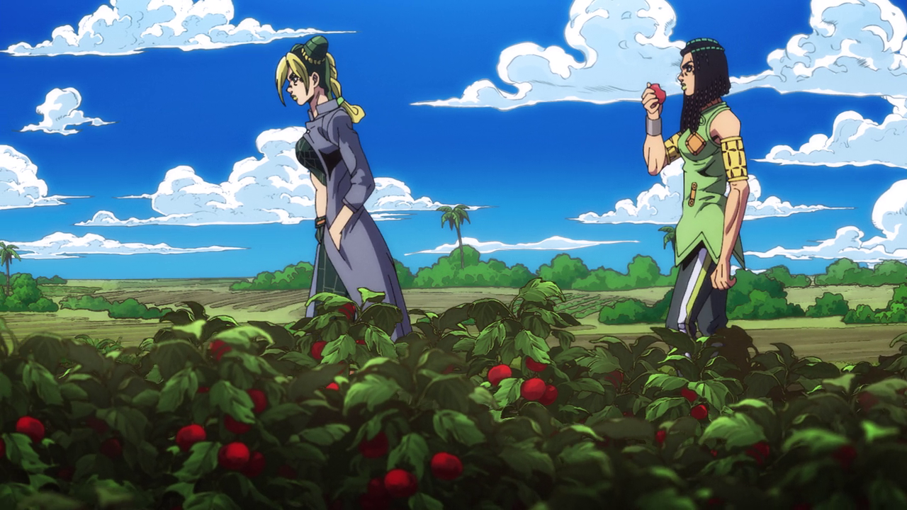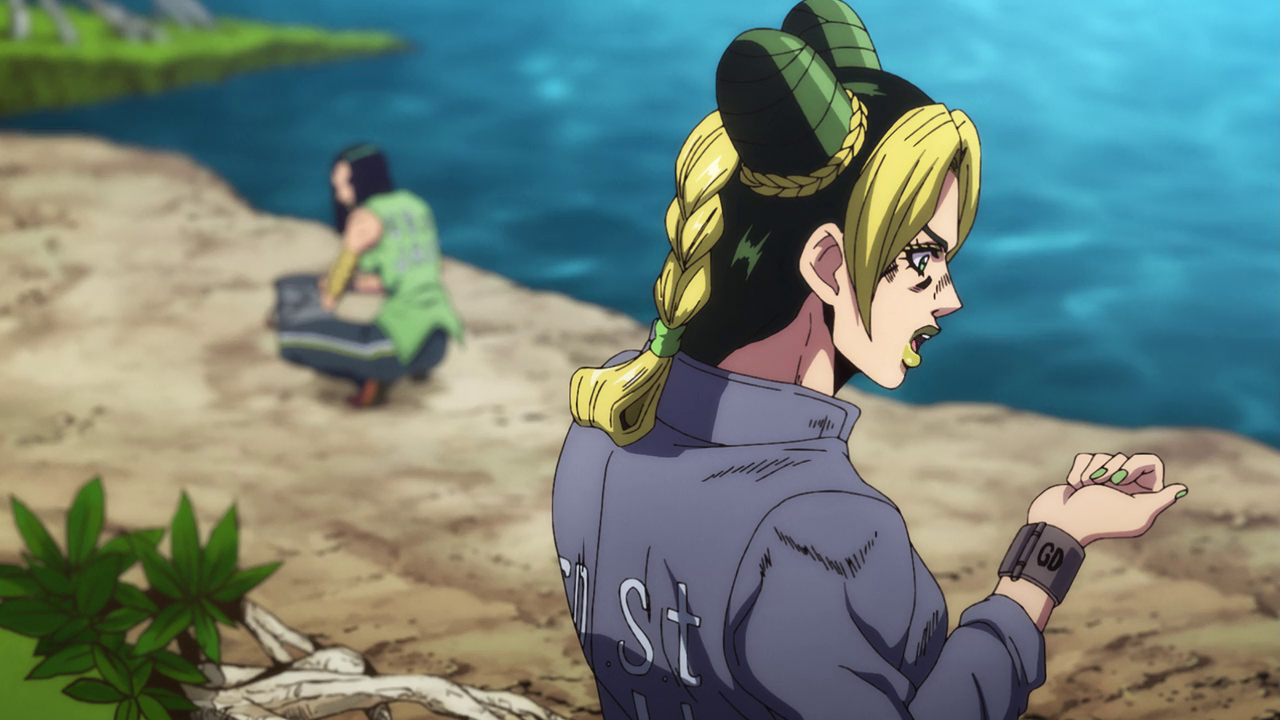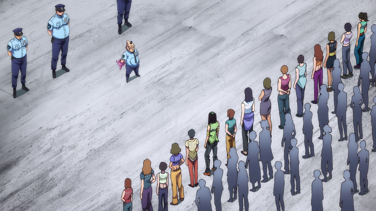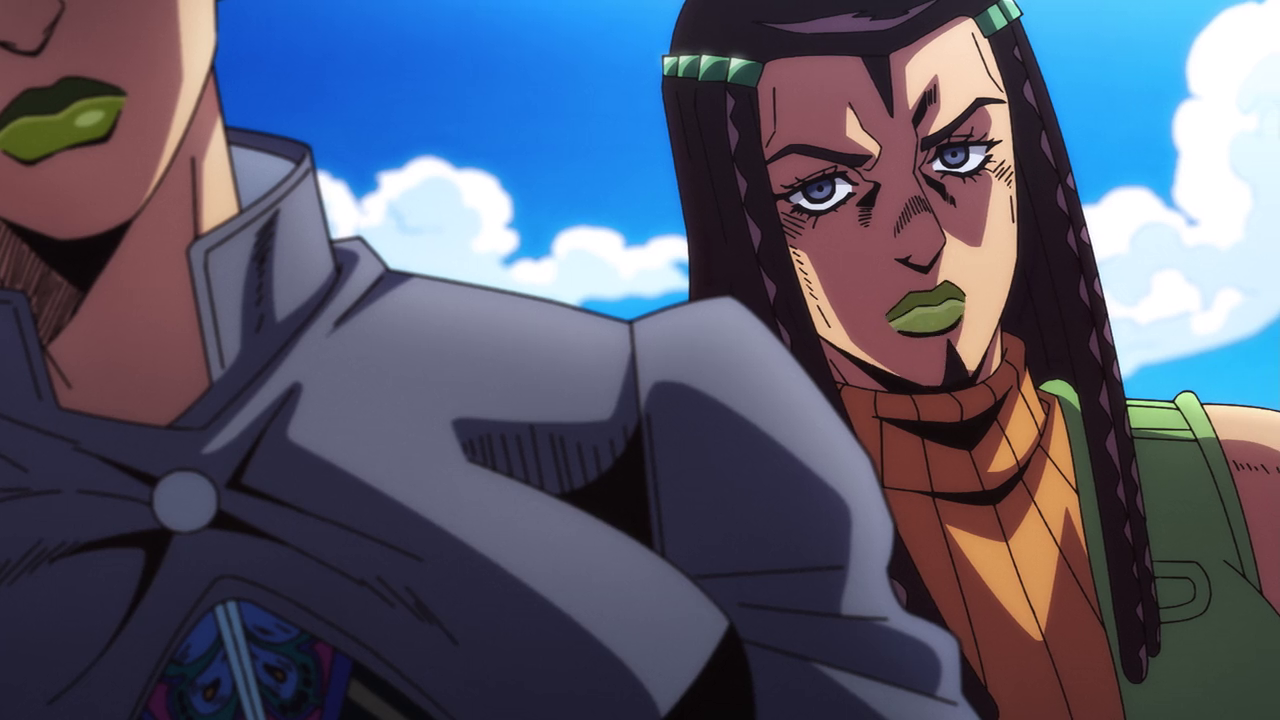 We open the episode up with a terrifying stand devouring two male inmates doing a job at night. Because of these two’s disappearance, a volunteer search party is formed with some of the female inmates to find them. And two of them consist of Jolyne and Hermes, where they finally catch up about everything that’s been happening from the beginning.