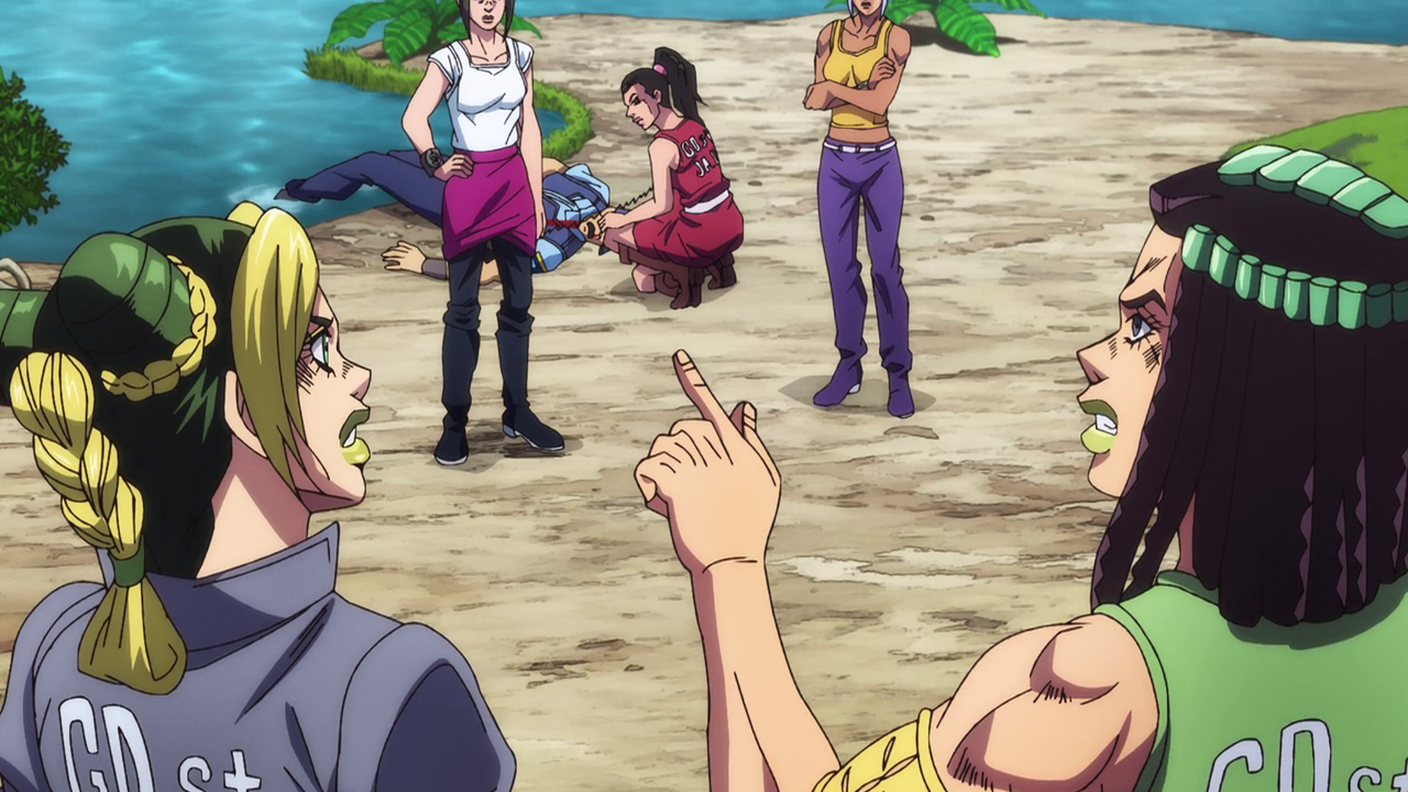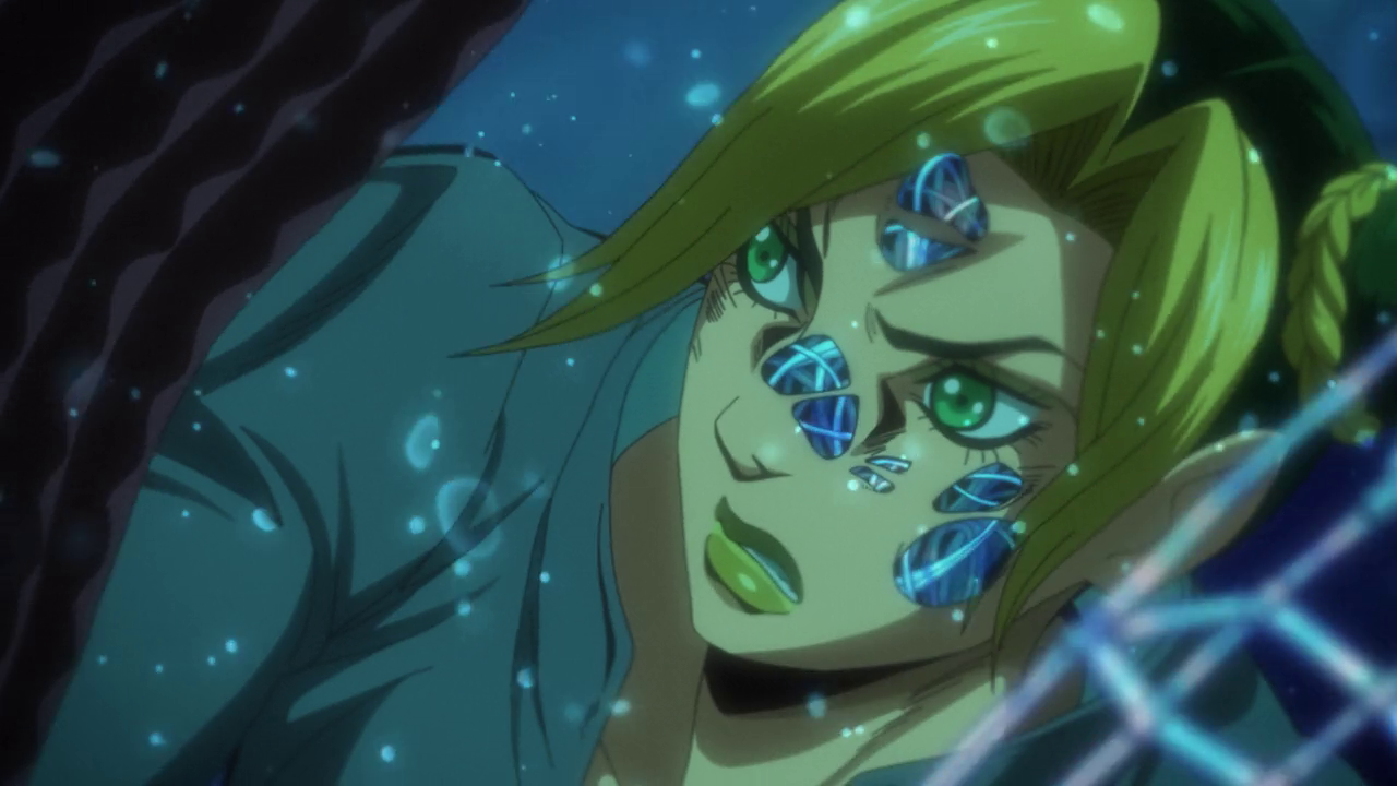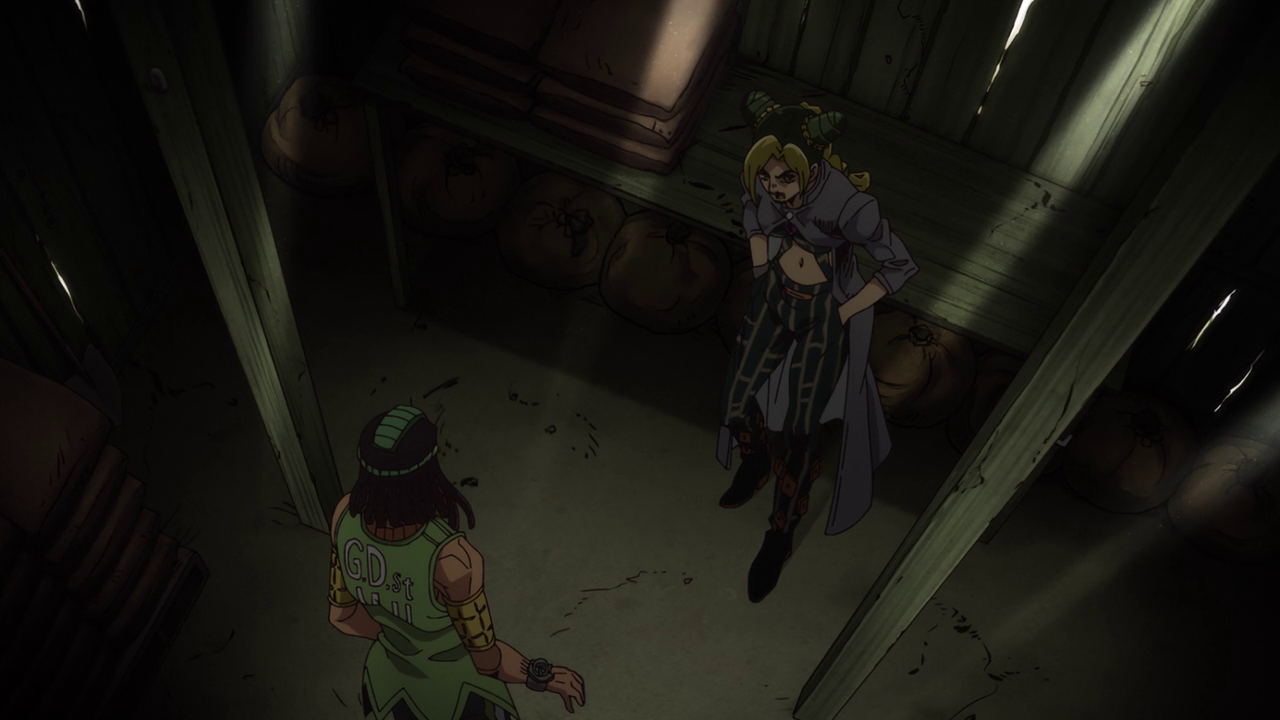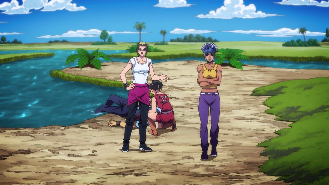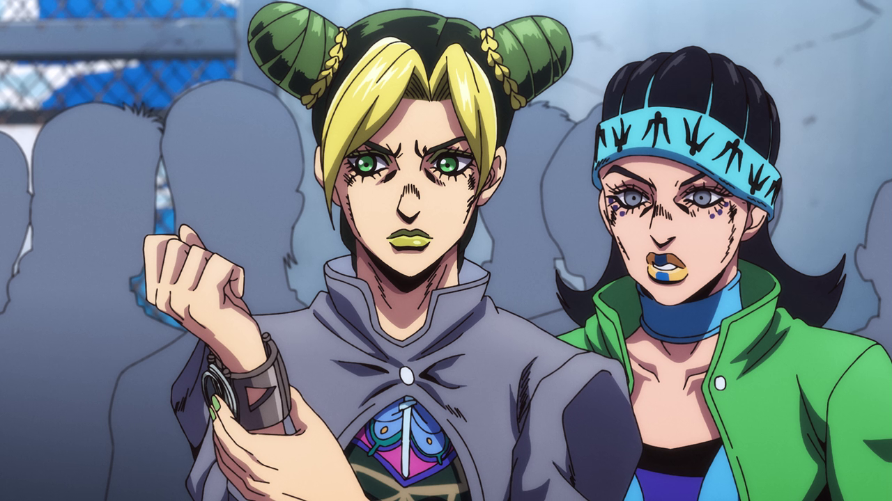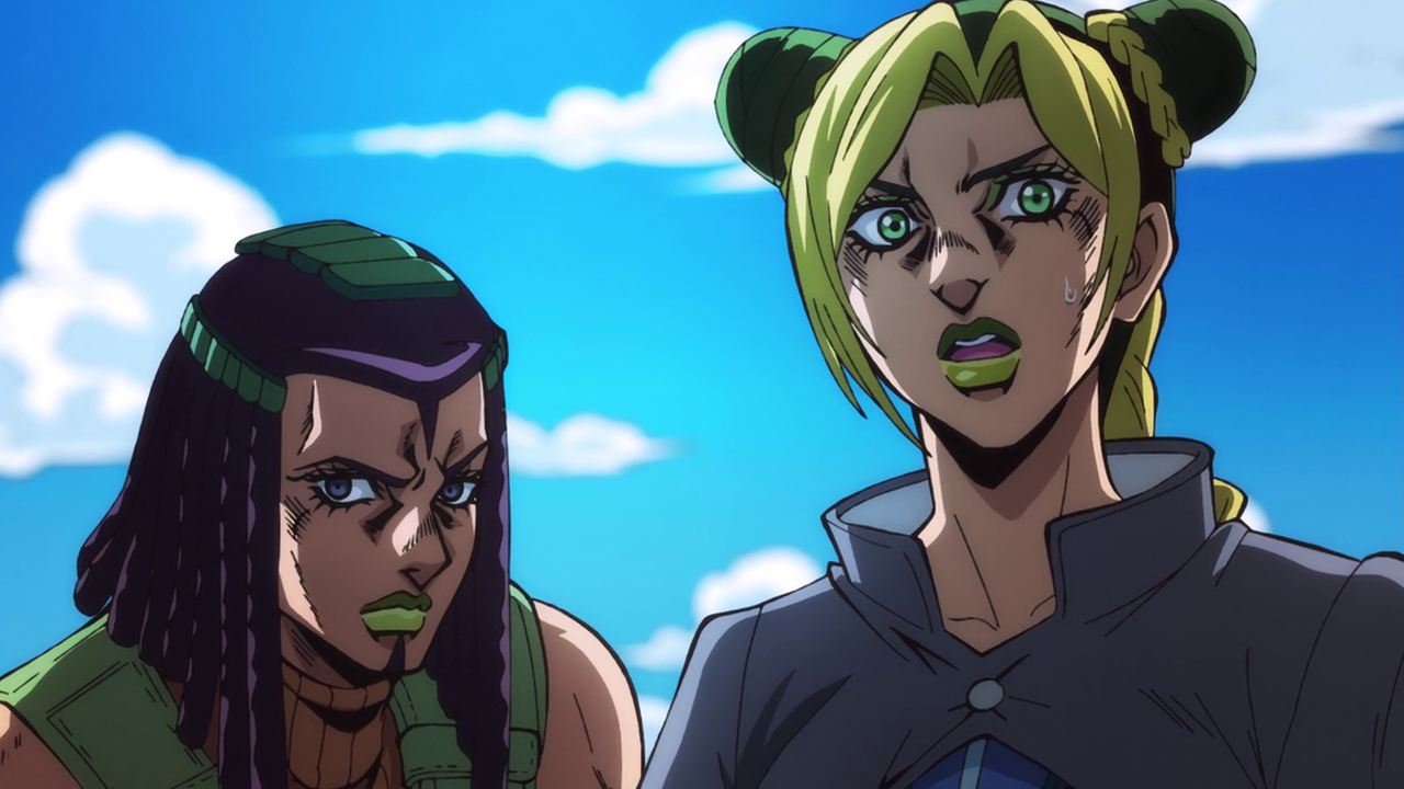 We open the episode up with a terrifying stand devouring two male inmates doing a job at night. Because of these two’s disappearance, a volunteer search party is formed with some of the female inmates to find them. And two of them consist of Jolyne and Hermes, where they finally catch up about everything that’s been happening from the beginning.