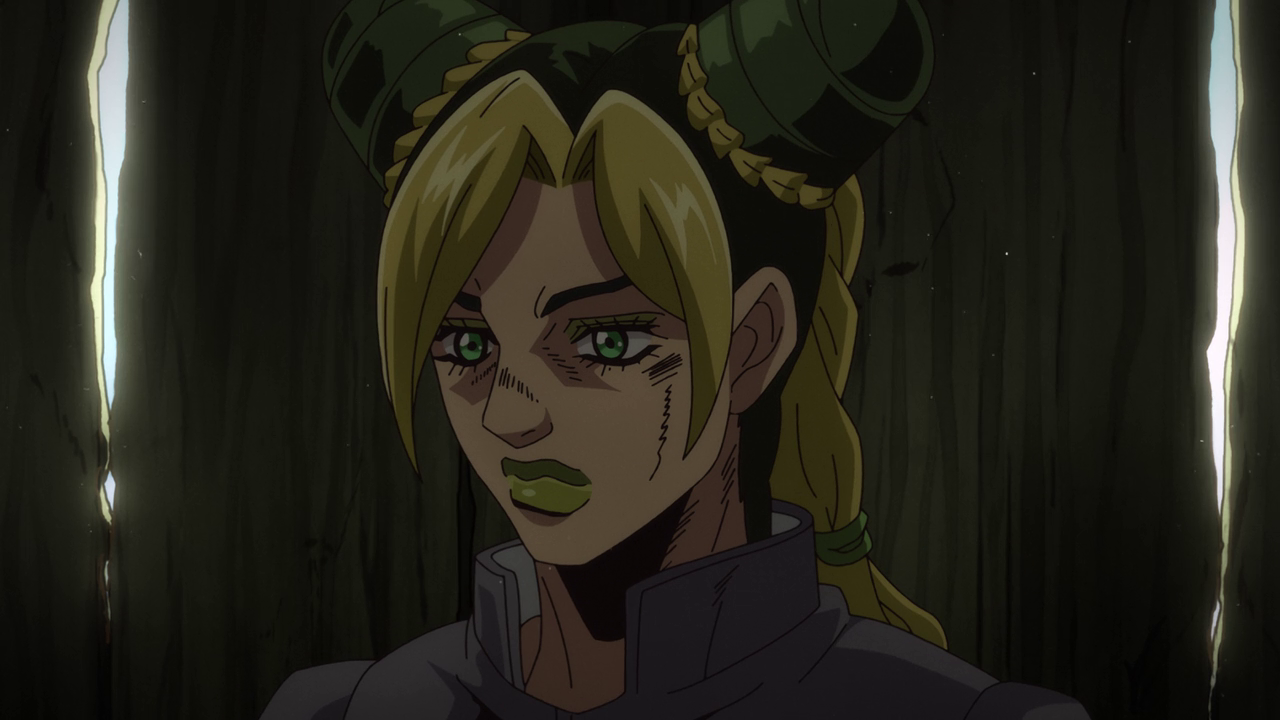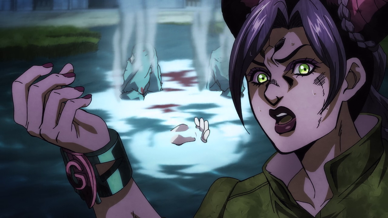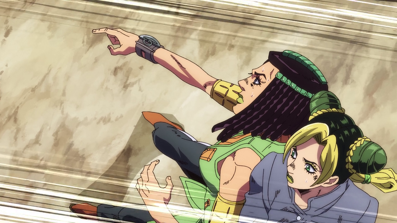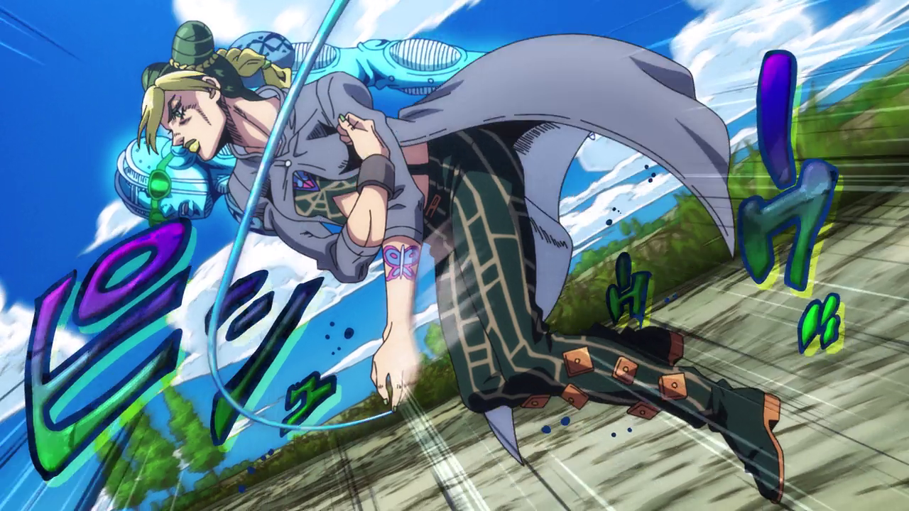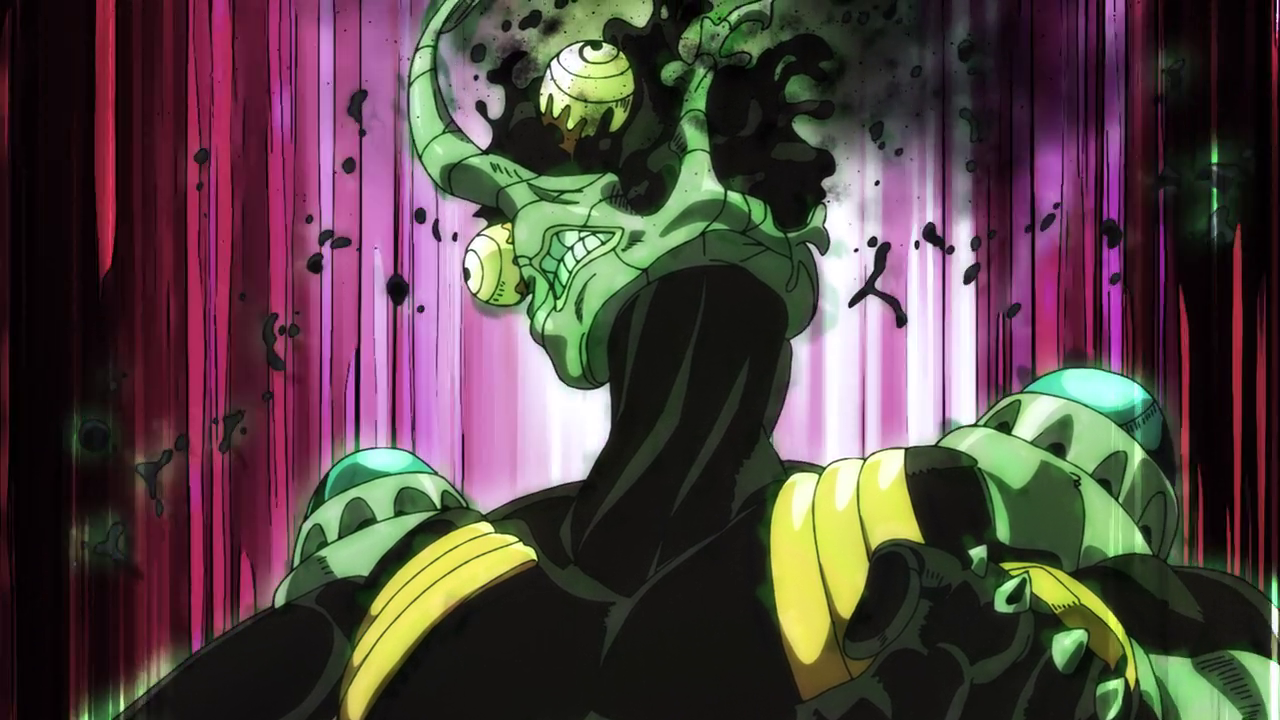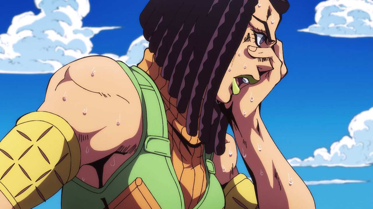 We open the episode up with a terrifying stand devouring two male inmates doing a job at night. Because of these two’s disappearance, a volunteer search party is formed with some of the female inmates to find them. And two of them consist of Jolyne and Hermes, where they finally catch up about everything that’s been happening from the beginning.