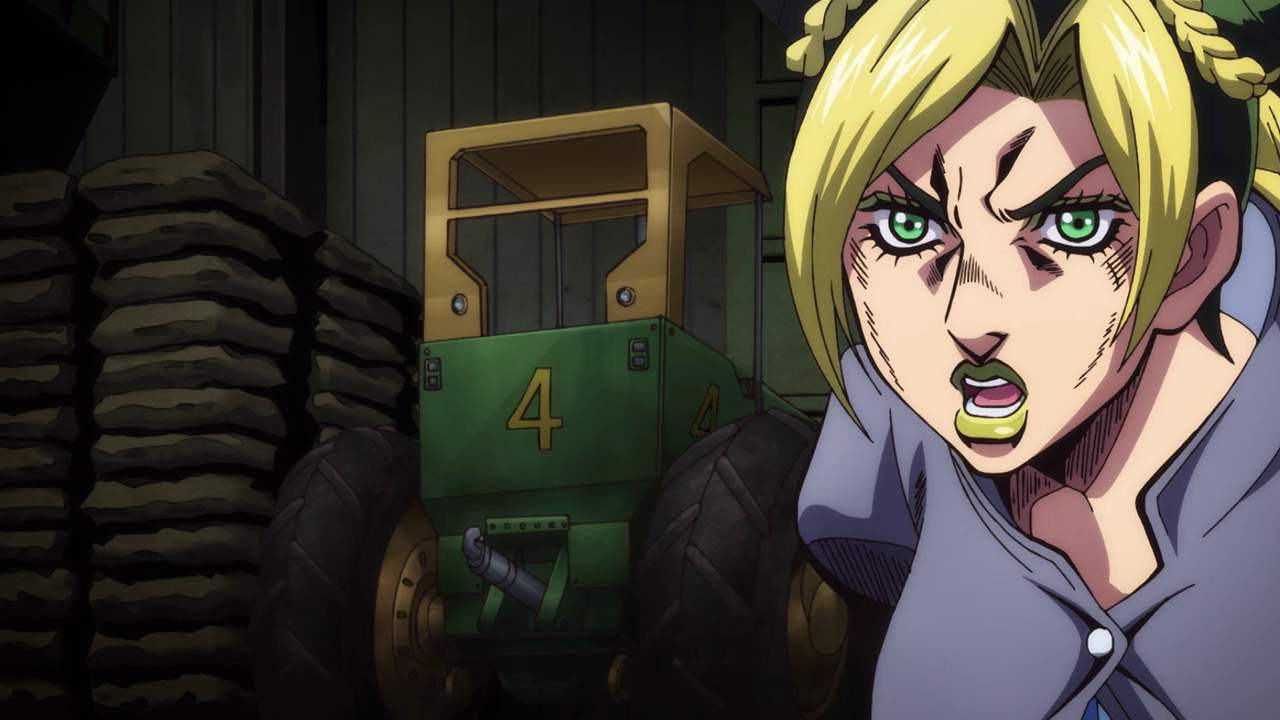 We’ve learned a very important thing from the discs, the main thing being that even when McQueen lost both of his discs he was able to be revived when they were put back, at least one of them. He looked like a goner last episode thanks to that electrocution, but getting at least one of the discs back brought him back to “life”. Meaning, Jotaro technically isn’t deceased. If he’s able to at least get one of this discs back, then he should be able to revive as well. However is there a time limit to this, we don’t know but at least there’s hope. Getting the discs back might also prove to be difficult, even though Jolyne has an idea where all of them are. She was able to sort of insert McQueen’s memory disc into herself to try and see it, and she was able to see that White Snake is hoarding a plethora of discs into the tire of a tractor somewhere in the prison. The only reason McQueen got a Stand was because White Snake forced one on him from a disc he already had, from previous Stands and Stand users whose memory discs he’s stolen for who knows how long. And with knowing that, Jolyne happily volunteered for the search party as it was led outside of the prison and into the fields. From there, Jolyne and now Hermes begin their journey for that tractor from McQueen’s memory where the discs are being held.