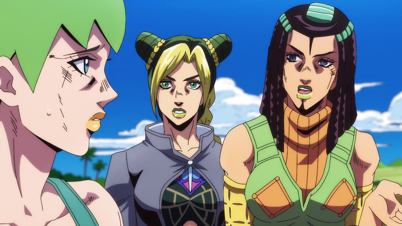 We open the episode up with a terrifying stand devouring two male inmates doing a job at night. Because of these two’s disappearance, a volunteer search party is formed with some of the female inmates to find them. And two of them consist of Jolyne and Hermes, where they finally catch up about everything that’s been happening from the beginning.