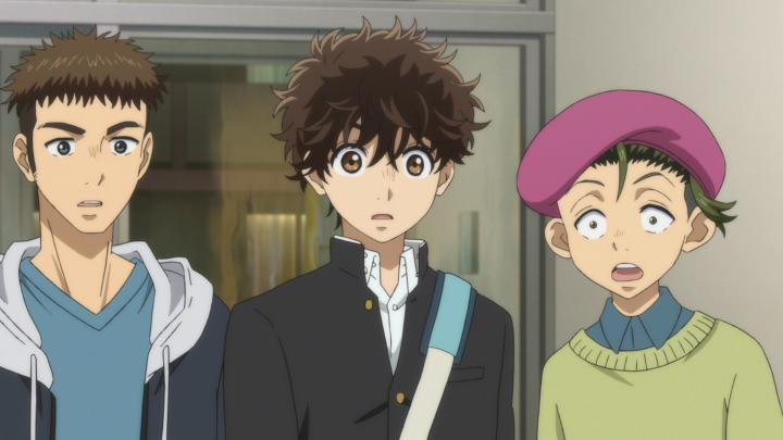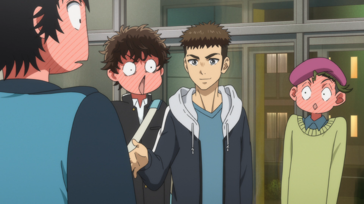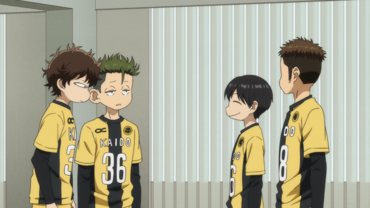 Kuroda and Togashi are the two who caught my eye the most, and I think those two are going to have the hardest time getting along. Kuroda is someone who was promoted from the youth team and seems to be the one providing a lot of exposition for us. I get the feeling he’s a little bit sneaky and someone who could cause chaos along the way, but he won’t outright be a vicious character. Togashi on the other hand made quite the appearance today after being brought in by the motorcycle gang, and he’s got a pompadour (this might be an unpopular opinion, but I personally think pompadours are PEAK character design), so maybe I’m a little biased. He was sobbing when he arrived, but when Ashito introduced himself as his roommate, the first question was whether or not he was promoted and becoming incredibly happy to find out that Ashito had made it in via the tryouts. Hmmm…. hmmmm…. much to think about with that.