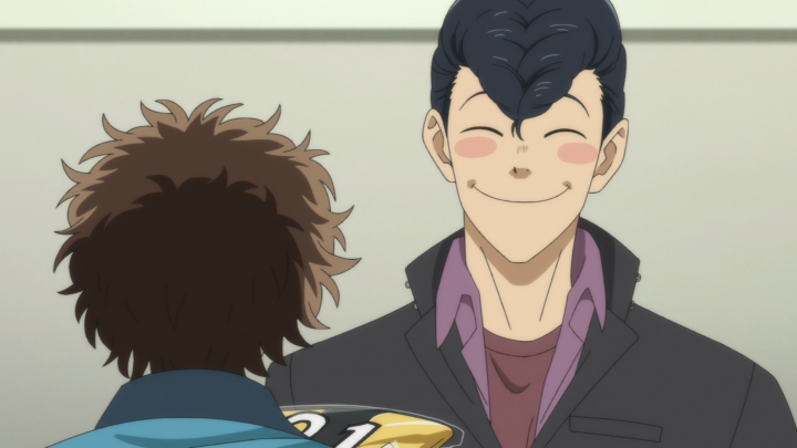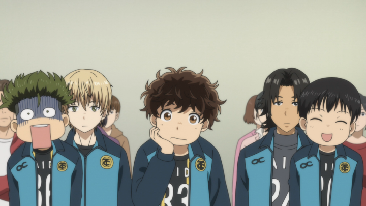 Ah, but in addition to these new characters we also get to hear from some of the coaches which…. I haven’t quite decided how I feel about that. Particularly the end of the episode with coach Nozomi. Of course, Ashito happens to be right outside the window when this is happening, but essentially Nozomi declares that he’s not fit to be on the team and needs to make leaps and bounds of improvements going as far to declare that he might be Fukuda’s first failure. Ouch…. I’m actually really curious how this impacts Ashito during the match but shout out to Hana for declaring herself his first fan.
