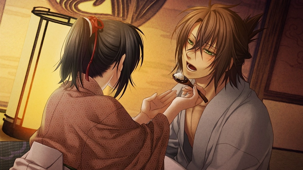 The turning point of their relationship is after Chizuru became a Fury. The change in Okita became glaringly obvious from this moment. He became kinder and more caring to Chizuru. Yet, he never treats her as a burden or a weakling. When they faced the Imperial Armies, Okita didn’t refuse Chizuru’s help (Chizuru actually killed someone here! Wow, didn’t expect that to really happen considering Otome game heroines in general). He would protect her from the burden of taking one’s life without refusing to let her fight. Okita treated her with the same respect she did to him. And before, Chizuru would have followed Okita’s advice and hid while Okita was fighting, but not this time, Chizuru decided to fight as well. This showed how much Okita and Chizuru have grown and leaned on each other. Okita trusted her enough to share his past with her, which helped Chizuru understand what made Okita the way he is and she came to trust him more.