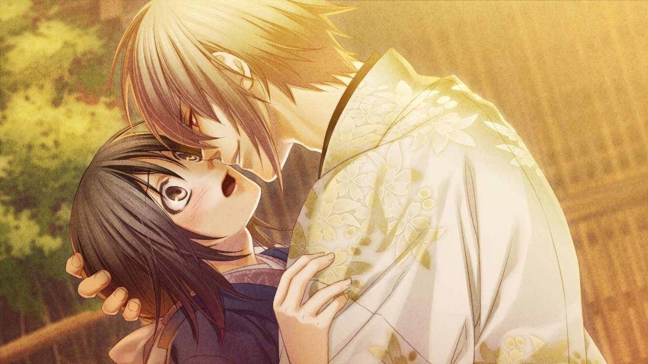 Unlike the original, in Kyoto Winds, Kazama’s route begins during the fight at Ikeda Inn if you choose the right option. Chizuru encountered Kazama alone and when he noticed her kodachi, he saved her from a Choshu ronin who was going to attack her. Kazama has an inkling of her identity since he recognized the kodachi as the heirloom of the Yukimura family, which he later confirmed when they met again for the second time during the Shinsengumi’s pursuit to Mount Ten’nou. As pureblood female demons are rare, Kazama made it his goal to take Chizuru as his bride so they can give birth to a more powerful pureblood demon offspring.