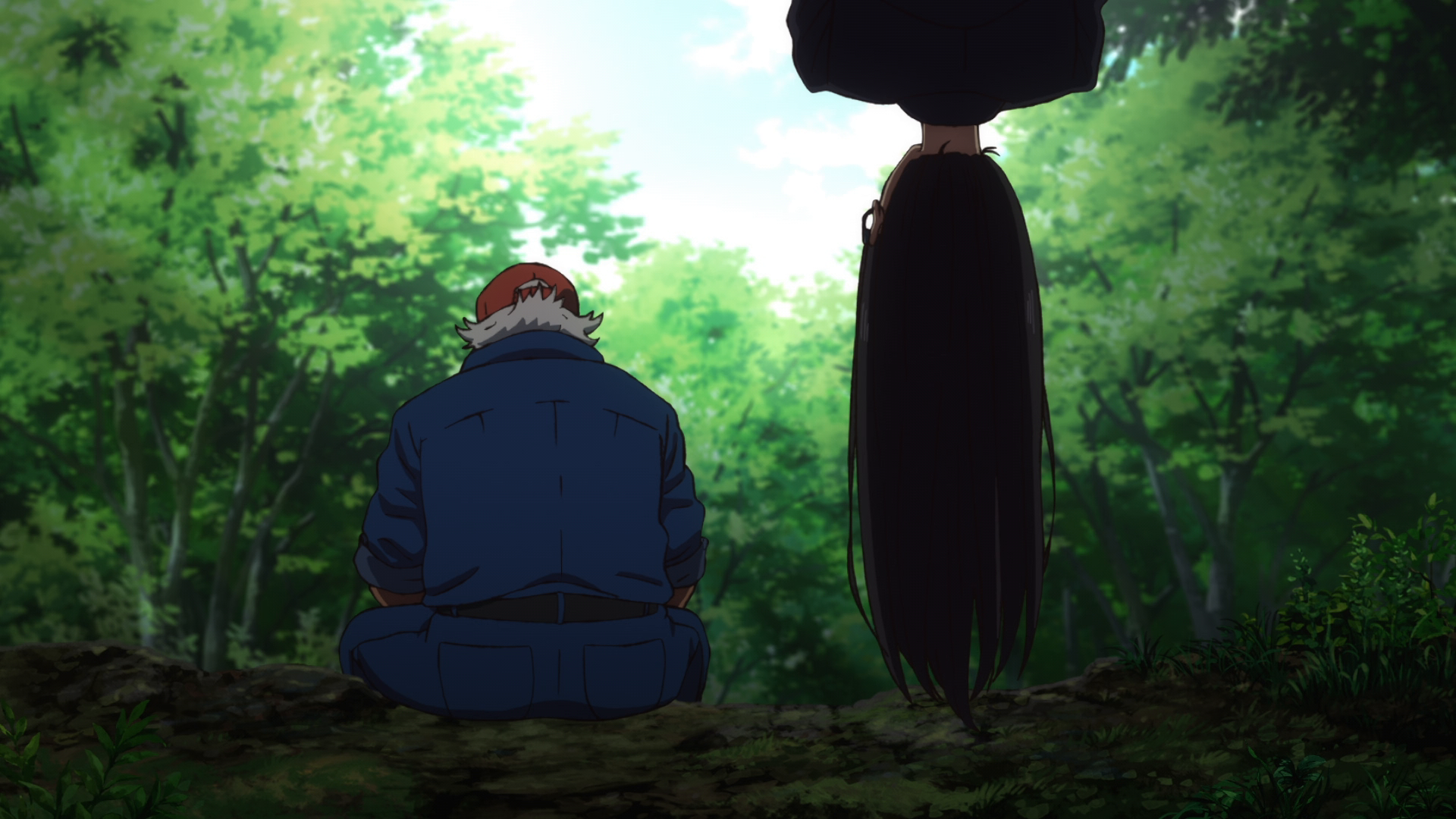 This was a very Hizuru-centric episode where we finally got to see her POV from the moment she leaves the ferry. We mostly got a bit of her backstory, such as her growing up on the island and also having a connection with Ushio as she and her friend would hang out at the cafe and sometimes talk and play with a much younger Mio. The whole island did the same, watching over the girls as Alan would work the restaurant. I like seeing that little detail of their daily lives and actually getting to see how much the local townsfolk really did love and care for Ushio and Mio, like the other characters have been saying from the start. We see Hizuru make it over to the funeral home and she meets up with Alan. She mentions the fact that Ushio had strangle marks on her neck, Hizuru flabbergasted that there hasn’t been a proper police investigation about this. There’s a lot of strange happenings here and it looks like Hizuru has an idea already of what’s going on. There’s a certain something that caught my eye that relates back to the last episode, and on top of that we learn other things.
