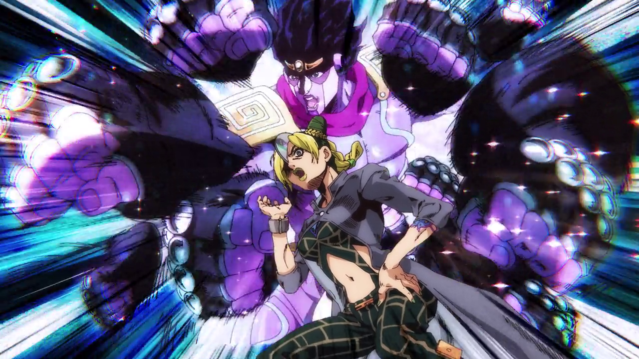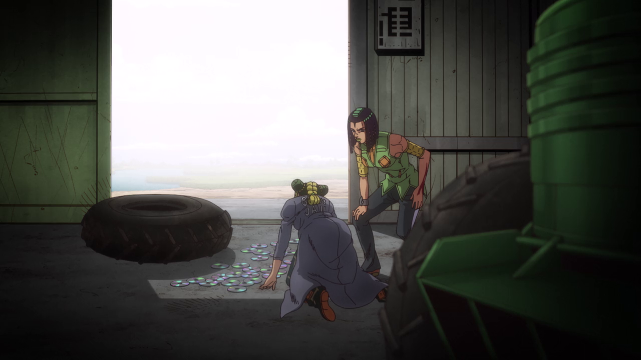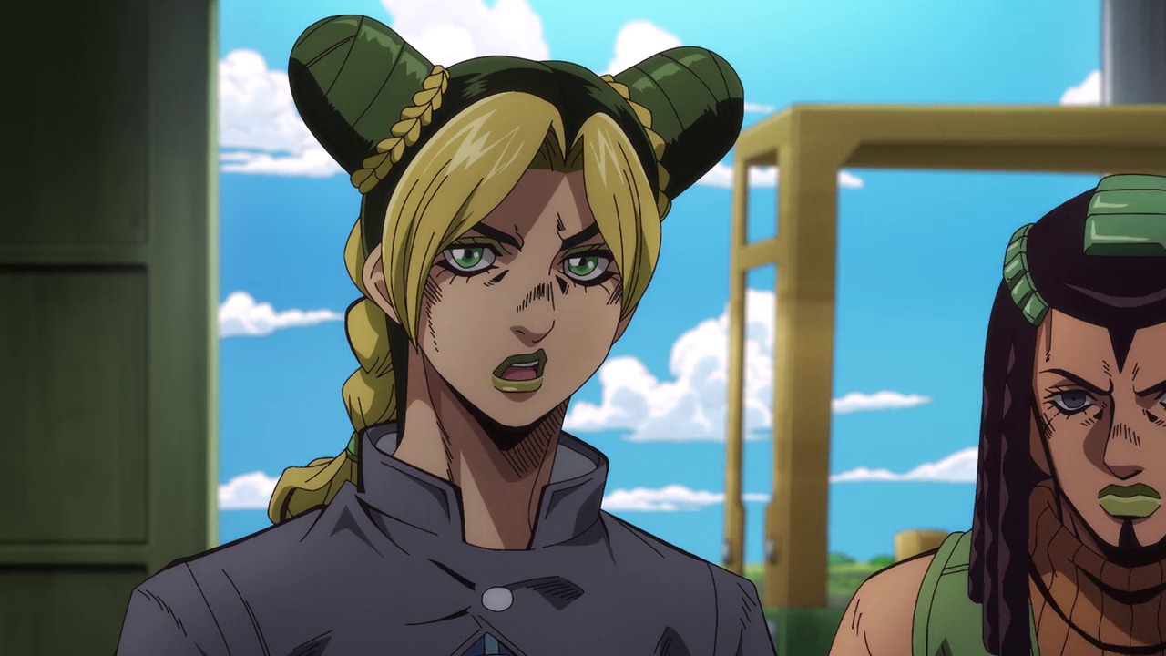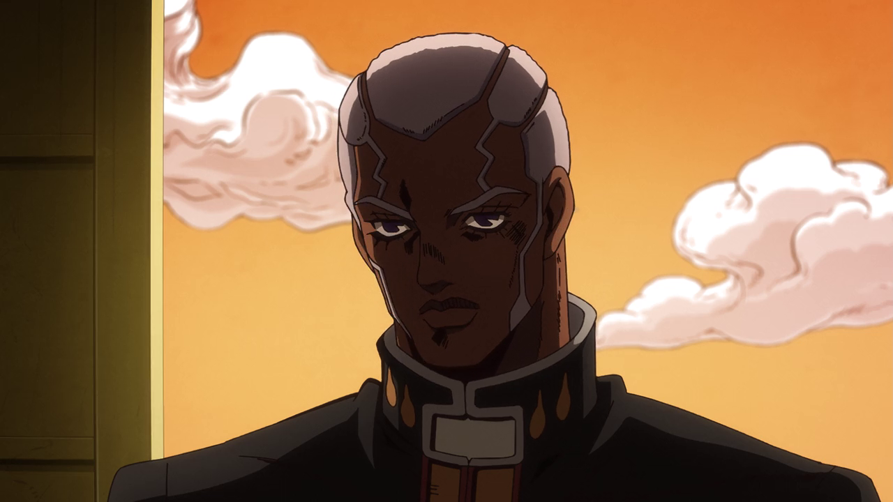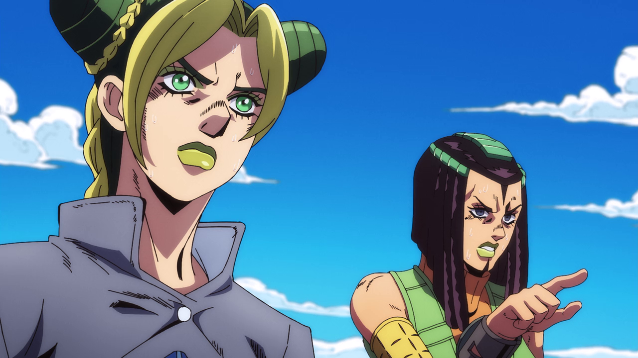 I knew the mystery sixth person in the group was the woman in the tank top since we had seen the other ladies in the shot where Jolyne and Hermes run to catch up to the jeep. But man that whole scene in the beginning with their bodies getting sucked of their moisture and all that was horrifying. I didn’t remember that particular scene so I wasn’t expecting it, but it was done really well. We find out that Foo Fighters, or F.F., is not a human but an organism with intelligence. After that long existential speech, FF is basically a stand user that started off as a plankton with intelligence and stuff. But thanks to that it has a pretty big weakness, being that it needs water to survive at all times. It needs a some source of water nearby, such as taking it from the wetlands nearby, or from humans, etc. Maybe not the most exciting fight but there were some good moments.