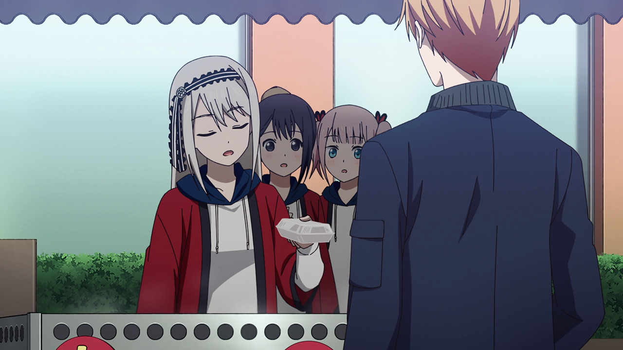 While I’m not always a fan of Kei’s attitude, her relationship with Shirogane is very interesting. Due to their mother having left the family, Shirogane had taken up the “mother” role and often comes into conflict with Kei because of how nitpicky he can be with her. However, it comes from a place of good intentions of trying to take care of her. Though from what we learned from Lilo and Stitch, the little siblings don’t want a parent from the older siblings, they just want a sibling. And deep down, I’m sure that Kei appreciates her brother in her own way despite not showing it often on the outside. Surely she’s aware of the sacrifices her brother had done for her in order for her to have niceties. While she chalked up getting Shirogane nicer/normal clothes as she wanted him to show up in something that wouldn’t embarrass her in front of her stall, I’m sure she also did it to do something nice for him. And from that look she had when her classmates were talking about him, there was a hint of pride for him in her gaze.