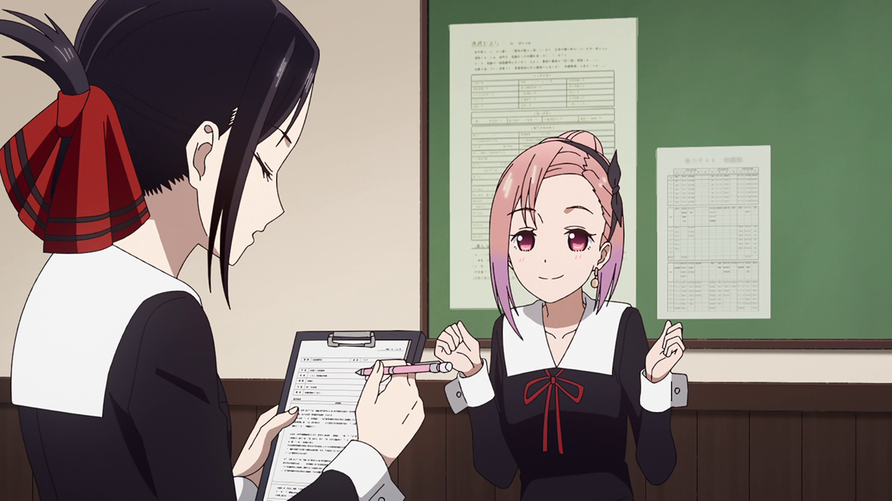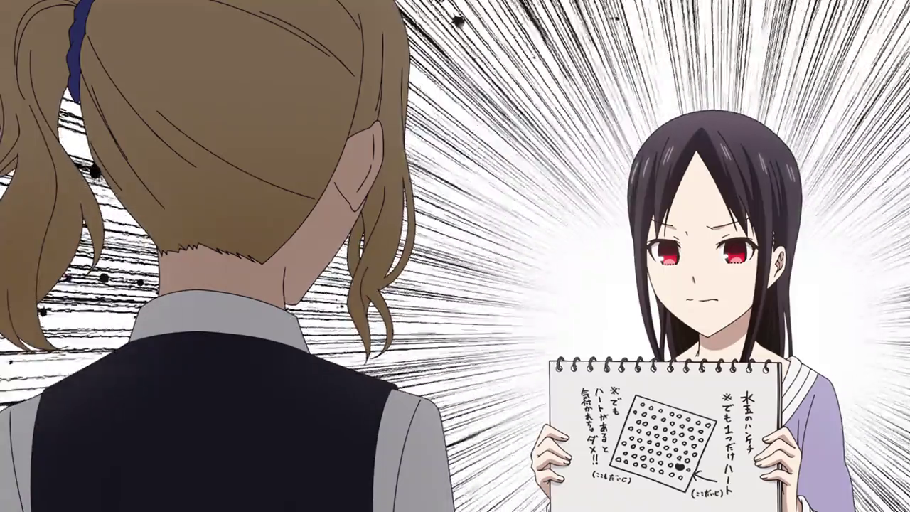 We got more focus on Kaguya and got to see where she’s at emotionally and mentally. She still seems to be in the initial mindset of the series, however, it does seem as if her reservations are breaking down and finally admitted to herself that she does indeed have feelings for Shirogane. However, while her pride may have finally been broken down, fear has replaced it and I feel like that’s a very normal feeling to have about this sort of thing. There’s always the lingering fear in the back of the mind where the person you like could reject you. Especially when you think someone has feelings for you but ends up being your own misconception. I feel like as a viewer it’s easy to just say to confess your feelings, but it’s not always easy for everyone, especially for someone like Kaguya. She just recently came to terms with her feelings and now she’s faced with the obstacle of actually admitting those feelings to Shirogane. Though it was hilariously frustrating to see her take one step forward and then double back to what is “comfortable.” Not gonna lie, I snorted at her rejecting the series’ main theme lol.