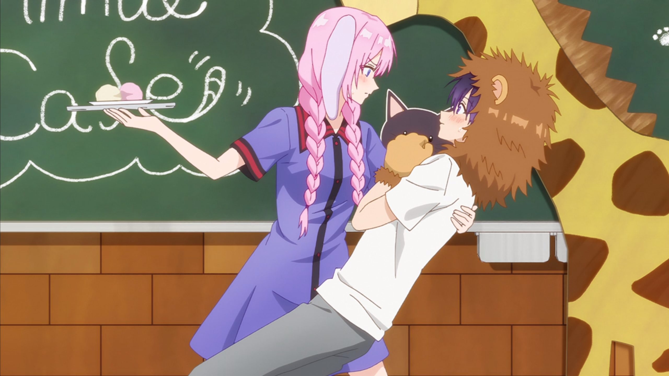 For the Cultural Festival, Izumi and Shikimori’s class decided to go with animal-themed cafe. Cutely, Shikimori wore bunny costume while Izumi wore a lion costume. Like the usual routine, Shikimori saved Izumi from falling by catching him and the tray he was holding, effectively making the bunny reduced the lion into a cute kitten lol (^w^)