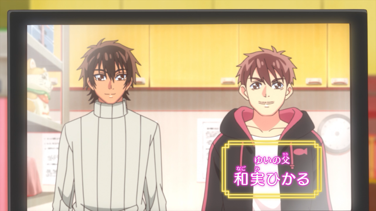 As suspected, Takumi’s father Monpei is actually from CooKingdom. Hilariously, he was found by Takumi’s mother the same way Yui had found Mari, collapsed on a bench due to hunger (must be a CooKingdom thing). While he stayed at the guest-house, the two hit it off and the rest was history. Monpei now works as a fishman alongside Yui’s father, so when time allows it, the only time the two are able to talk are during the videocalls. Unfortunately, this makes it difficult for Takumi to ask his father about what’s going on, and he missed his opportunity to do so today because it was already agreed to do a joint-call with Yui’s father at her place.