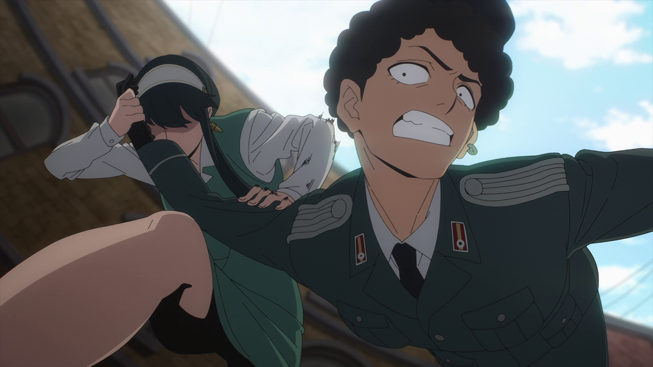 The fact that Loid can’t trust others is really sad. I can’t blame him since it makes sense considering his profession. But it’s still sad how his suspicion puts distance between him and Yor, who interprets the distance to her doing something wrong. The two really need to exercise more communication, but considering their relationship was built on hiding their identities, it makes sense that there isn’t much communication going on. But man, it did feel kind of far for Loid to put a bug on Yor to see if she was hiding anything. Again, I understand given his circumstances, but it doesn’t make it any less wrong. But then he REALLY oversteps his boundaries by having him and Frankie pretend to be part of the Secret Police and try and scare Yor into revealing any ties to them.