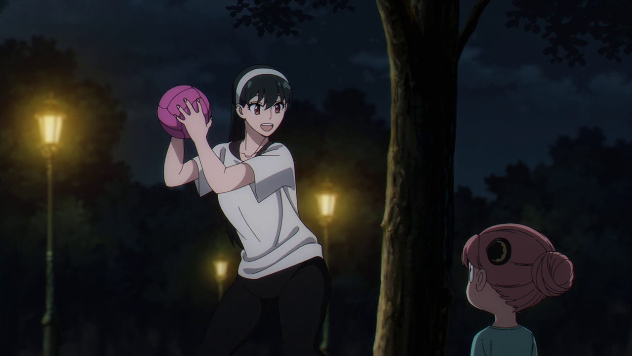The rumor mill within the classes claim that the MVP in the upcoming dodgeball tournament could win a Stella and both Damian and Anya are gunning for that position for their respective “missions.” And of course we are treated to a few training montages. Unlike how I felt with the celebration of Anya getting into Eden, I did really like the expansions they did for the chapter they were adapting. Especially since it felt like a cute bonding moment between Anya and Yor as they trained together and it didn’t feel like it was unnecessary or complete filler. I also really like the little development Loid showed by trusting and leaving the preparations up to Yor. Though, that’s probably because he never truly believed that a Stella would be given out for this game. But I’d like to believe lol. I also died at Anya visualizing herself under a waterfall, only to cut back to reality and show her just sitting in the shower. Damian’s brief little training montages were also very cute since I’m sure that’s what actual kids do. Though the Dragon Ball Z reference had me rolling.