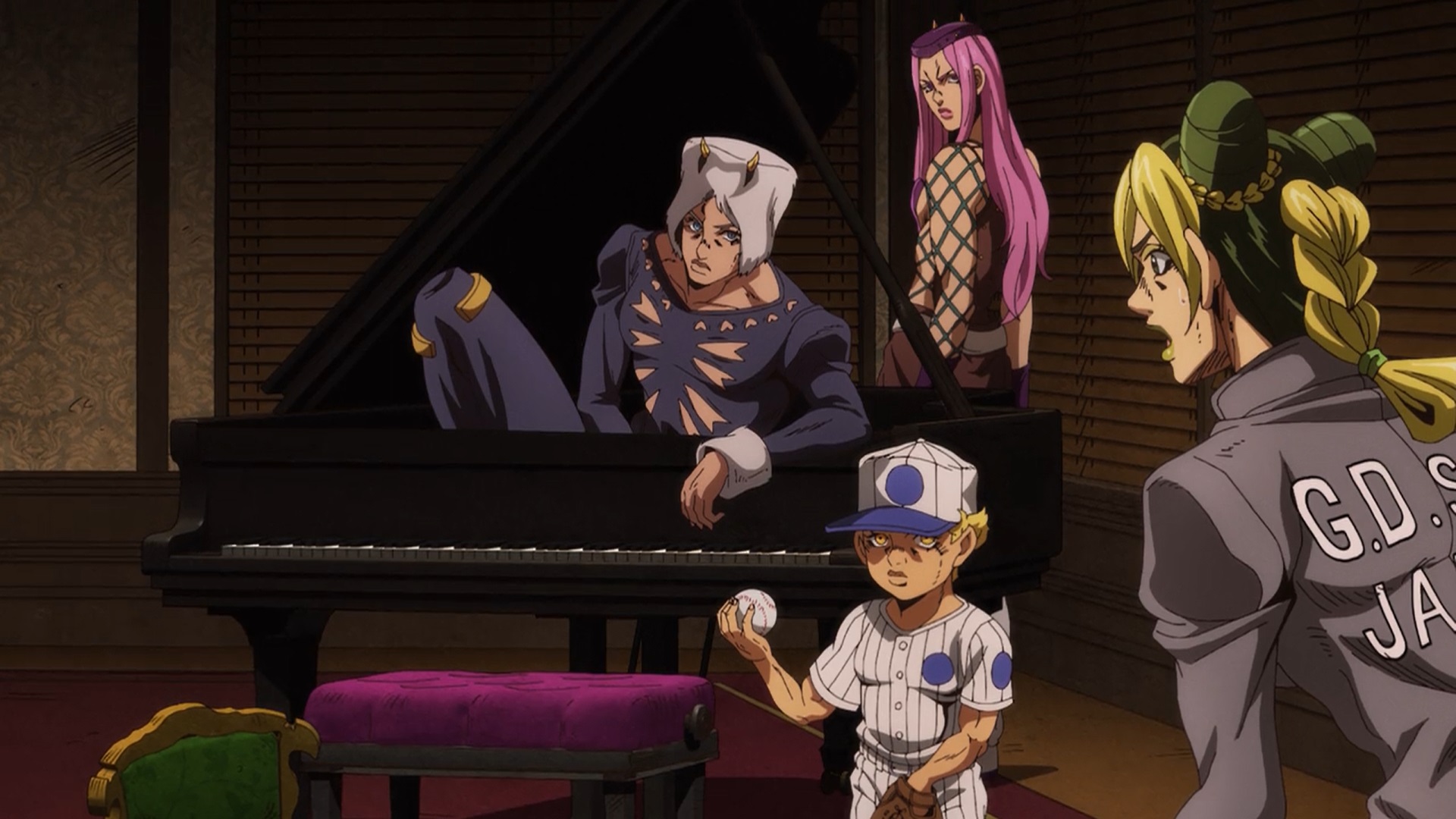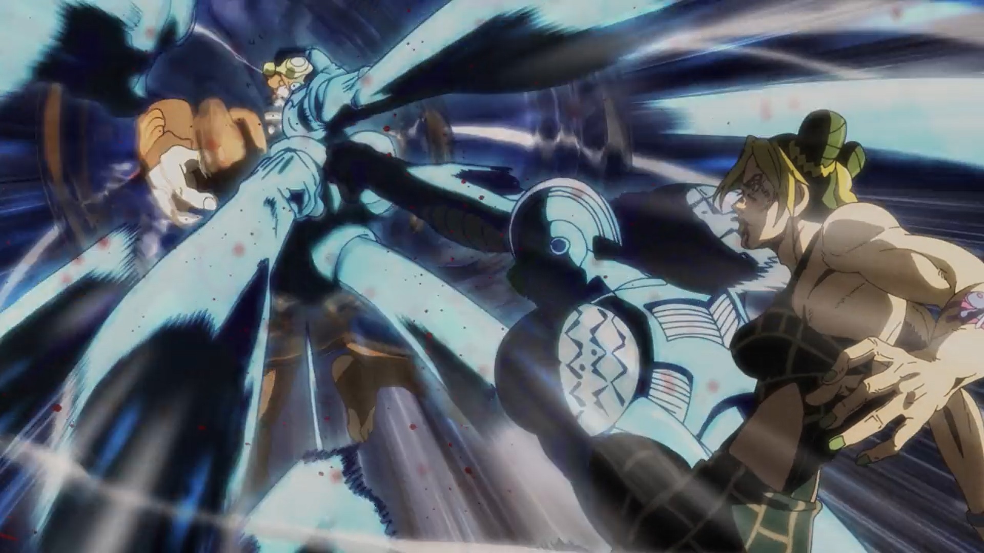 Weather Report’s Stand ability is like the name implies, he’s able to control weather. He can create little clouds and control the air in rooms, which came to be a life saver when dealing with Jumpin Jack Flash who created zero gravity spaces. It was a really entertaining fight, as well as kind of terrifying when we saw the extent of how dangerous the zero gravity could be. A great science lesson too from Weather Report as we learned how blood worked in the body and how they would meet their end if they didn’t deal with the enemy in time. This was a much more entertaining fight compared to the last one, and very creative too. We barely got to meet Weather Report but we saw what he could do with his abilities, like making an entire air astronaut suit. The way he can manipulate the weather is seriously really fun to watch and so helpful. It was also pretty funny that he used his clouds to absorb their pee droplets. And while the pee moment felt random it was actually part of that science lesson with the zero gravity haha. And just to gush about Weather Report again, I love that they cast Yuuichirou Umehara for him because he’s just perfect. I love his voice and I think it suits Weather’s so well. Honestly I’m just happy in general with this cast because all of them have been killing it.