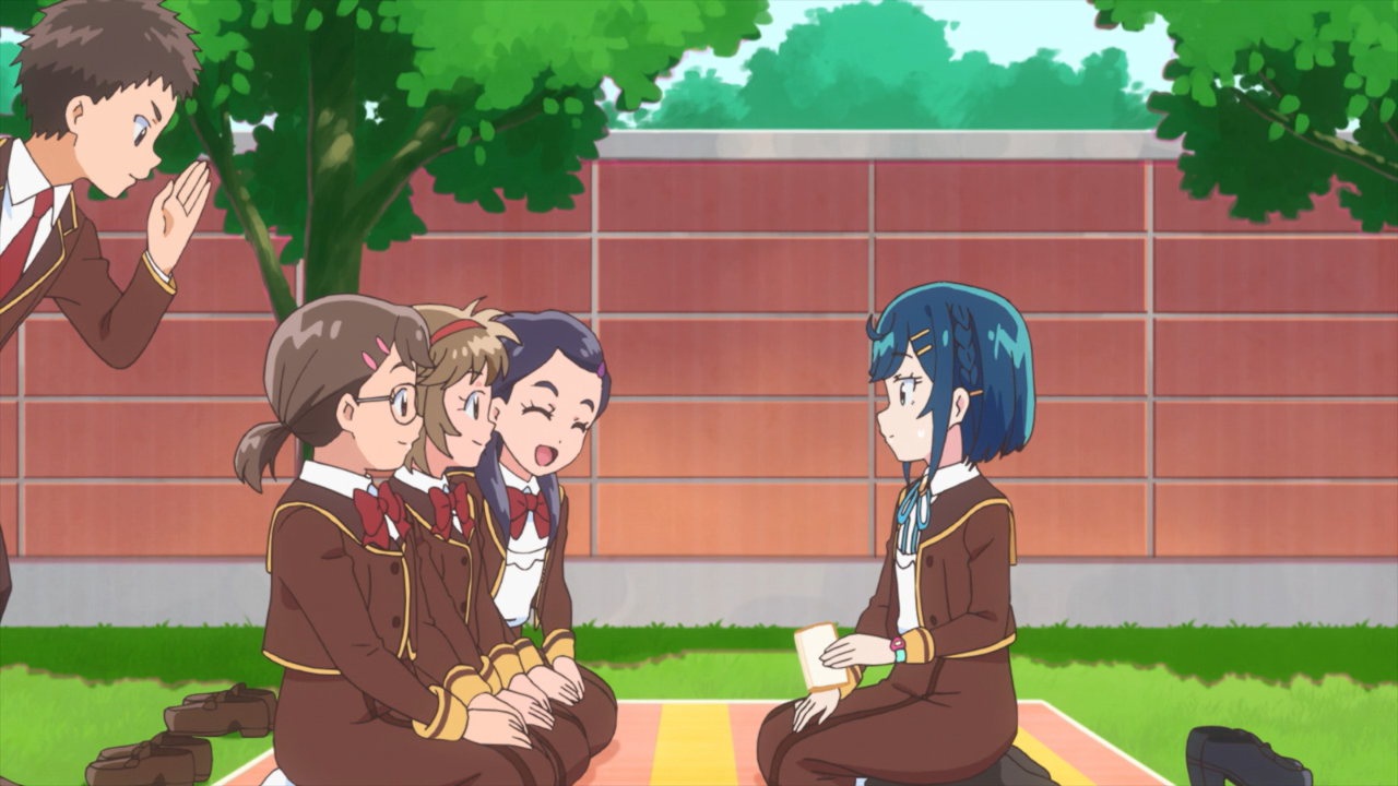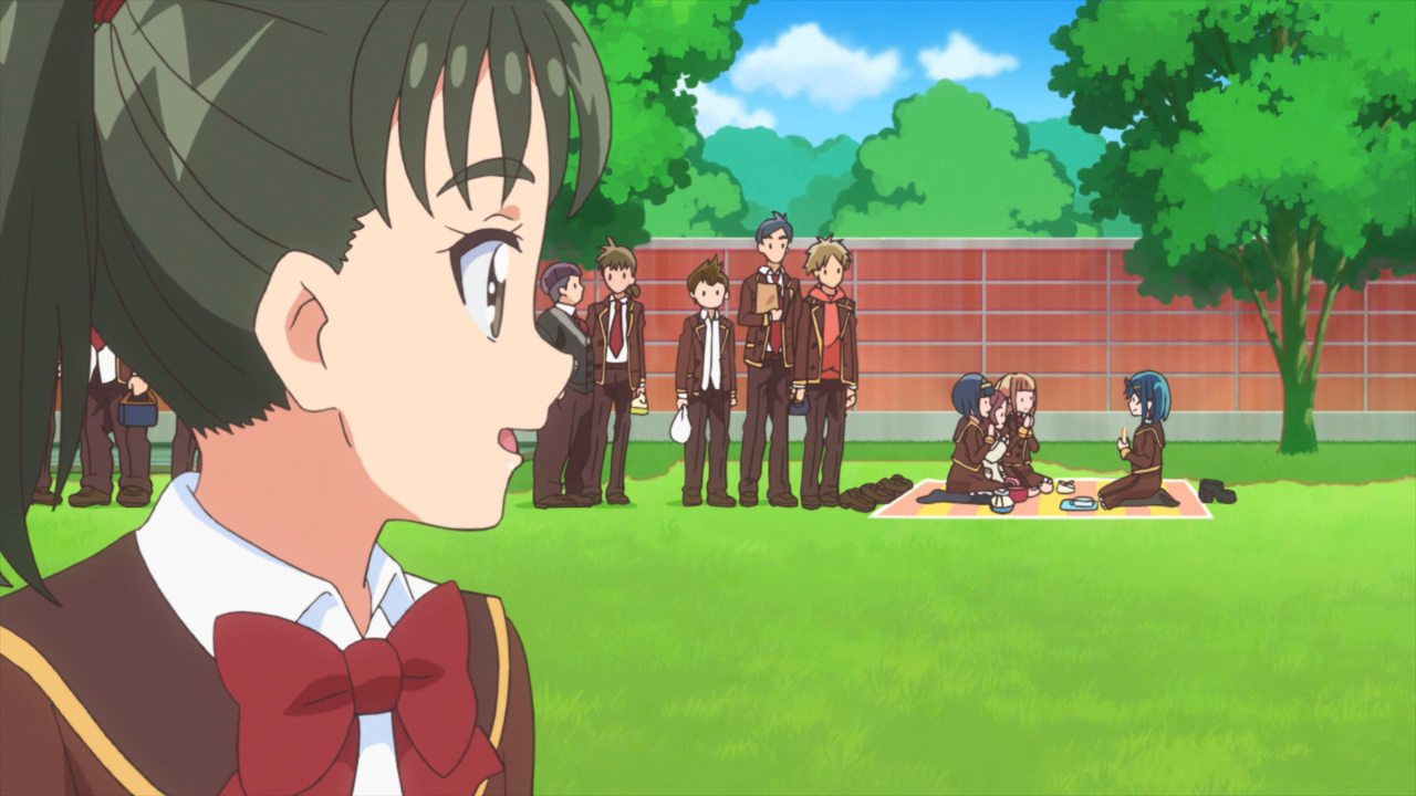 It was really nice to see Kokone coming out her shell. It’s a lot of fun to see her being more expressive than the day we have met her. She is still getting used to socializing with others, and found herself overwhelmed when her classmates all asked sit with her during the picnic outing. And honestly could you blame her? There was a freaking line queuing up to talk with her. I can only imagine the reason why her classmates suddenly find her very approachable (when they previously though she was out of their league) was thanks to three girls she had helped out when they got caught in the crossfire of Gentlu’s monster asking if they could eat with her.
