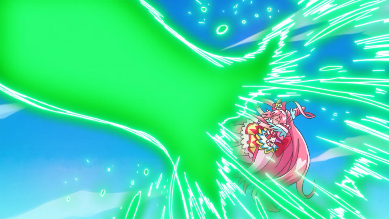 Ah, speaking of the devil, it is really great to see how much stronger his monsters are. They do make the fights a lot more exciting, and this week was a great follow up to the last one. This time the girls faced off a heavy-hitter. It had an interesting range of attacks, making it difficult the likes of Yui who can only do close-combat at the moment to land a hit. However despite saying that, it was Kokone who actually knocked it off his feet with a sucker punch of her own thanks to her resolve to rescue Todoroki’s memories.