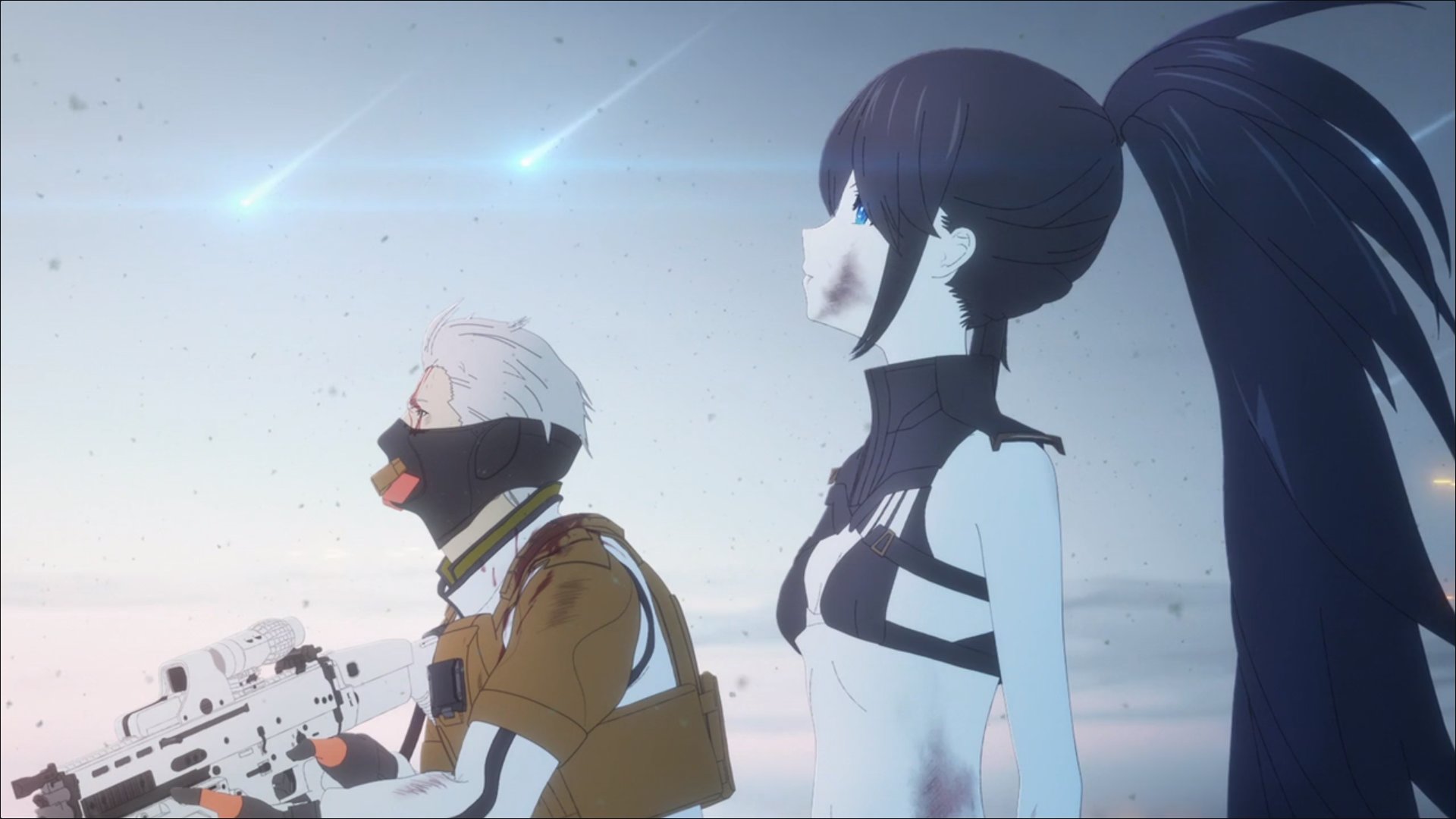 So much for a happy ending, Black Rock Shooter: Dawn Fall left us with an open ending. It’s neither bad nor happy. Empress managed to stop Lunatic’s doomsday plan. Though there’s only 30% humans left on Earth who survived the meteorites attack, it’s enough to buy humanity time for 200 years before Artemis reenact her plan again. This victory was cryptic, however, as Empress, Dead Master, Strength, and David were killed in the battle. With the time given to them, the survivors were determined to finish what their predecessors couldn’t. 50 years later, Norito took over David’s position as a colonel, Monica as the head research like Stella, and Charlotte officially became a Hemitheos Unit along with Miya (who became one after got severely injured form the meteorites prior) and the clones of Dead Master and Strength.