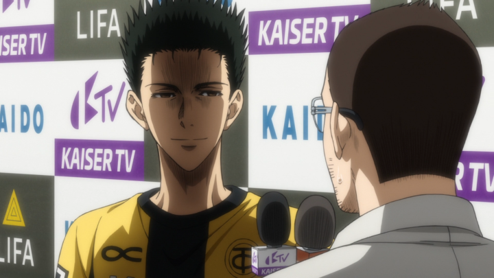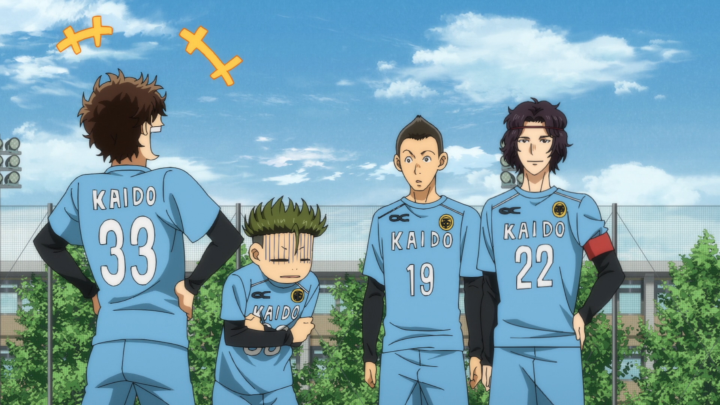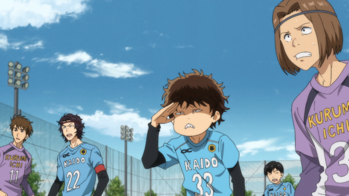 I know they’ve said multiple times that Esperion is not a soccer school and I definitely don’t expect it to be, but there are definitely times where Aoi treats it as such. In last week’s episode he right out says, “Right, I am learning to play soccer”, and arguably if he was joining a team of this caliber he should have already known how to play! Even though he’s a self-proclaimed fan, his view of the game is incredibly narrow and individual focused. Even though he’s learned about the triangle, we haven’t seen his consideration for mid or back field players which I think is crucial for understanding the whole game. Even with his ‘crow’s eye’ perspective it doesn’t really consider the players in the back, just in the front to help him get the goal. Which for his purposes as a forward makes sense! But because he has the ability to see the whole field at certain times that… I think this is more suited towards a mid to backfield position. He can see the openings and predict the movement. It makes sense that the position is valuable for turning a game back around. It’s just a big bummer for Aoi.