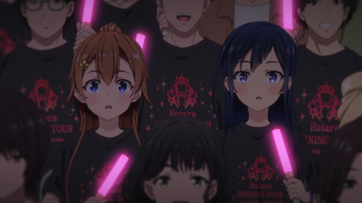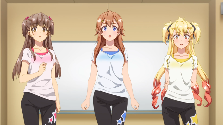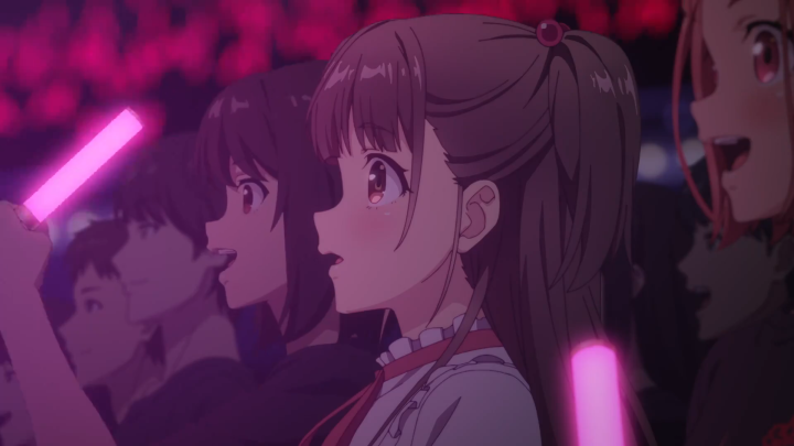 Since this is only the premier episode, we have so much more to learn about each of these characters, but overall I think I like the direction each of them are going. Usually, I’m able to call out who is going to be my ‘best girl’ early on, but all three of them make it difficult. First we have Haru, who seems to be the center of this group and truly a “Glass Half Full” type of person. So far she seems incredibly positive and genuinely just excited to be an idol and to essentially spread the love of idols across the world. A valid goal! Now, my biggest critique about Haru is that… I wish she could keep the braids and glasses!! Sorry everyone, I am a glasses fan and whenever they make characters take them off I get so bummed. Let these characters see !!! Give them their glasses!! Next we have Rio, or Rio-sama who has a little bit of the chuni vibe going for her and that can always be fun! She’s not quite at a Yohane (Love Live! Sunshine!!) level, but I am personally choosing to believe that she is still working on getting into this persona that she’s made for herself. Recently, I’ve been enjoying these types of characters a lot more, so I am excited to see how she develops. And then lastly, we have Kyouka, who takes the quieter and seemingly more level headed approach to things. But she has her own quirks as well! She’s a prankster who… can’t really land her pranks. But genuinely I think things like that can be quite fun to watch – especially when people take her too seriously because they can’t tell if she is joking. So, all in all, I’m excited to get to know all these girls!