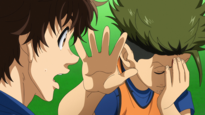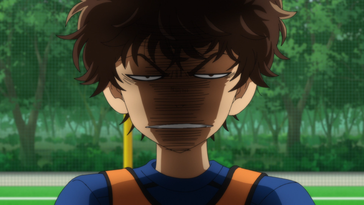 Overall, I felt that the first half of this episode was pretty predictable. But that’s not necessarily a bad thing. We have Aoi playing a new position and not fully grasping the mental change that needs to occur to play such a different position. As a forward, his goals were to get the ball and score. But as a defender… well he hasn’t quite figured that out yet. He wants to go out onto the field, but gets scolded because he’s not aware of his other teammates. And I think that’s a really key thing to focus on. As much as he’s getting yelled at for making the wrong decisions, he needs to think about what is going on with everyone as a whole rather than just maintain the horse blinders for getting the ball. It’s going to take some getting used to, and Aoi isn’t patient so of course he is going to get frustrated.