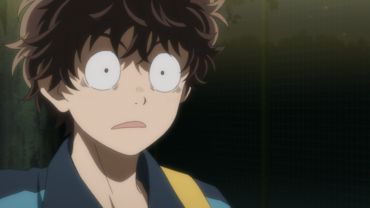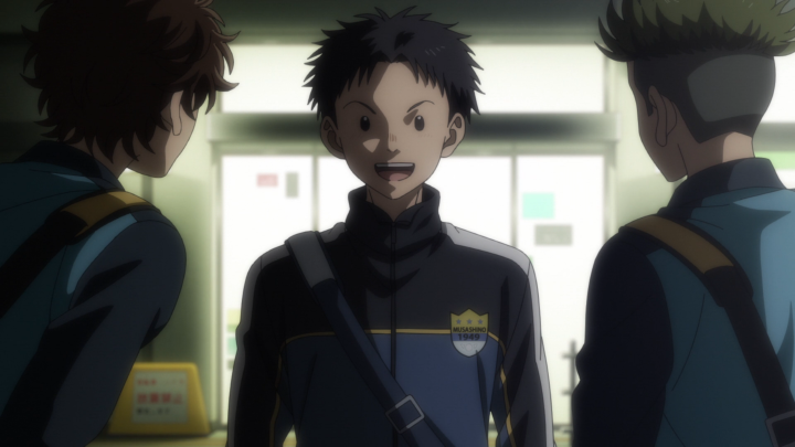 But outside of Aoi and his growth… The Esperion B team is… really not looking too hot. They are in relegation which essentially means that if they do not perform well they will be bumped to a lower level league. And quite frankly, there is just too much pride to let that happen. Tachibana seems to be taking this the worst though. He places the blame on himself for not being able to score more. This weighs heavily on him, so much so that he says that he wants to become like Aoi. The two have a lot of similarities that come out in this episode, but the biggest difference is that Tachibana internalizes all of this whereas Aoi expresses things externally. Plus, when Tachibana looks at the past mistakes, Aoi takes a different perspective of “We lost this match, so it is on me to make sure that we win the next one”. And honestly, I really enjoyed hearing all the non-promoted players talk about how they perceive the matches! Whether they place the blame on themselves or hide behind others, or whether or not they move on from the mistakes of the game and look to improve for the future. Hooray for seeing other characters !!
