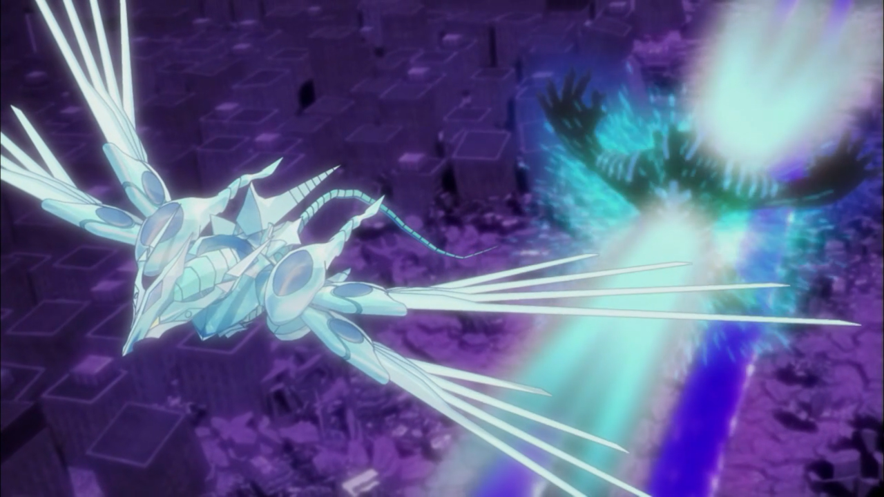 At last, it’s time for Yusei to have his fateful rematch against Kiryuu, and we finally get to see the whole story of how Team Satisfaction fell apart. What I found the most interesting however was how surprisingly unreliable Yusei’s view of Kiryuu’s character was. Sure, there was a time when he was a good friend, but after they conquered the entirety of Satellite, Kiryuu had changed. And for that reason, I honestly find it both interesting and perplexing how Yusei talks about how Kiryuu “never like this” and how he “cared about them more than anyone else”. Instead, what I see Kiryuu as someone who evolved into selfish, ruthless and cruel duelist who he personally chose to hunt and seek to destroy his “enemies” for his own satisfaction. In fact, it is actually chilling to see just how much Kiryuu had descended into this mad obsession.