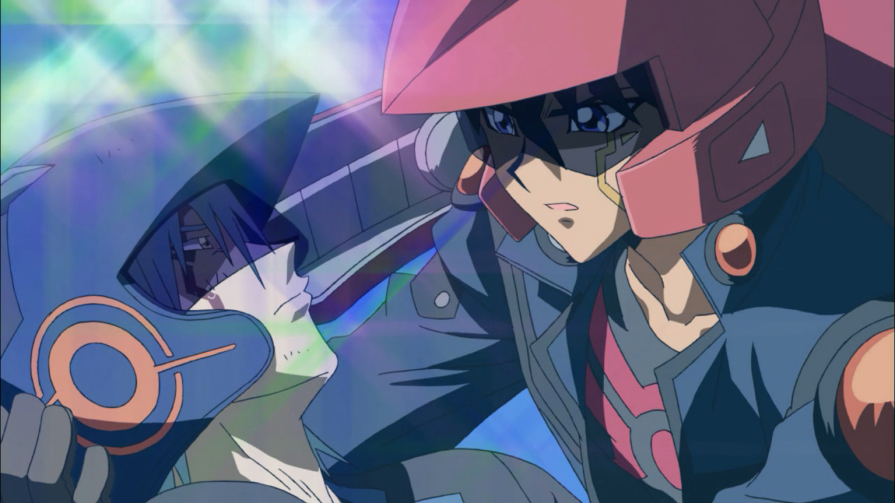 Which leads me to the next point: Kiryuu sure loved blaming everyone for betraying/leaving him when he has nobody to blame but himself. For god’s sake, Yusei claims he failed putting enough trust in their bonds to save him and it was a mistake to try and take the fall for him– but I call bullshit on that. Out of the three, it was Yusei who tried his hardest to save him. After-all, he was the one who stuck around when the other two left, and he was also the one tried to get Kiryuu to call off his plans to attack Security, going as far as choosing to leave because he felt like that was the only way left to get him to stop him from doing something so stupid. On top of that, what the fuck did Kiryuu expect to happen by attacking security? Clearly he was so blinded for battle that he didn’t stop to think of the consequences he would face regardless whether he wins or lose. So when he started going on about how retaliation he faced in prison and how he lost his deck, I rolled my eyes so hard because maybe… gee I don’t know… MAYBE IF HE DIDN’T DECIDE TO BOMB SECURITY HEADQUARTERS HE WOULDN’T HAVE BEEN IN THIS POSITION IN THE FIRST PLACE?!?!