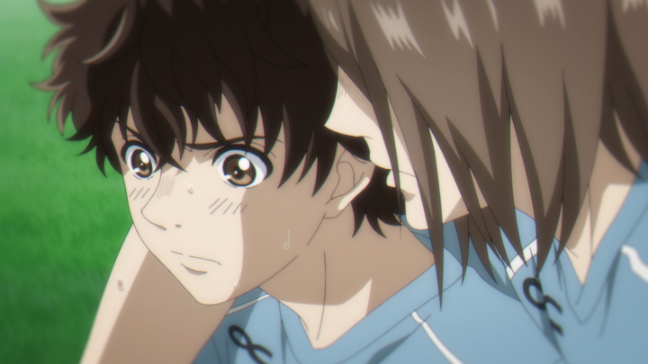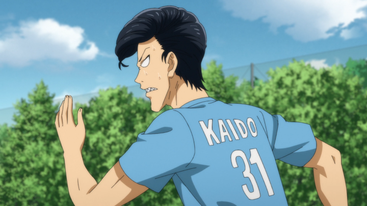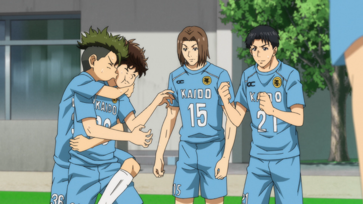 “I’ll go back to how I was before.” NO AOI! That is in fact the opposite of progress! I get that you want to be a forward and that you aren’t having fun on the defender line, but please consider the rest of your team! You are a whole team and not just a single person! And I get that watching Yoshitsune play makes it seem like you only need to rely on one person, but it takes a whole team to get the ball to the goal. Plus, if your opponent is smart enough to target your exceptional player you are kind of left scrambling because you put all of your eggs in one bucket. Which we see in this episode! As we enter into the second half, Aoi’s team talks about giving the ball to Yoshitsune and not much else in terms of strategy. While that may work if you are playing an average team, this doesn’t necessarily work at the level they are playing at. Yoshitsune is good, but he’s not that good.