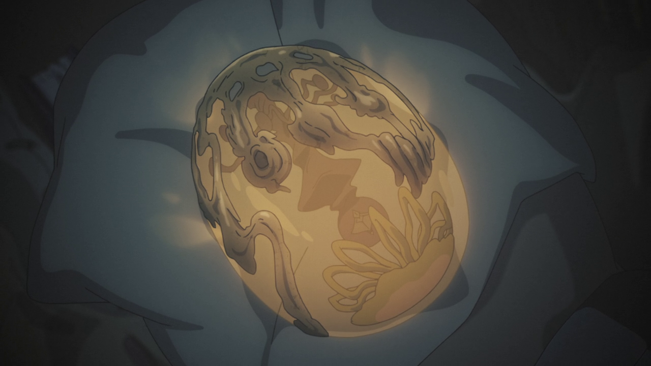 I’m not sure what it is their religion is, or why or how Wazukyan is a prophet, but he definitely does have a lot of power with what happened. It’s easy to go after Wazukyan and call him a monster for what he did, and I admit it’s truly disgusting and awful. But in the end, feeding Vueko and the others Irumyuui’s children is what saved them. And judging from Wazukyan’s words, that may have been another part to her wish. Maybe Irumyuui’s main wish was to be a mother and bear children, but part of it (like lack of pain) must have been saving Vueko and the others. And…she did. It’s unfortunate the way that it had to happen based on the Cradle of Desire’s control, but this truly saved their lives. This is an extremely complex issue of life or death and this particular solution falls in a really gray area, and you can compare it to people trapped on a freezing mountain resorting to cannibalism to survive. And this is kind of like that because it’s technically cannibalism, even if those babies look more like hollows. Maybe it’s the issue that Wazukyan fed it to everyone without telling them what it was exactly and possibly going behind Irumyuui’s back. It’s a terrible solution to a terrible situation and I still can’t blame him. Though the fact that he held a calm smile on his face while he dropped the truth on Vueko was disconcerting. Maybe Wazukyan would seem more sympathetic if he had at least shown some remorse as he revealed what he did, but he kept such a calm and happy demeanor.