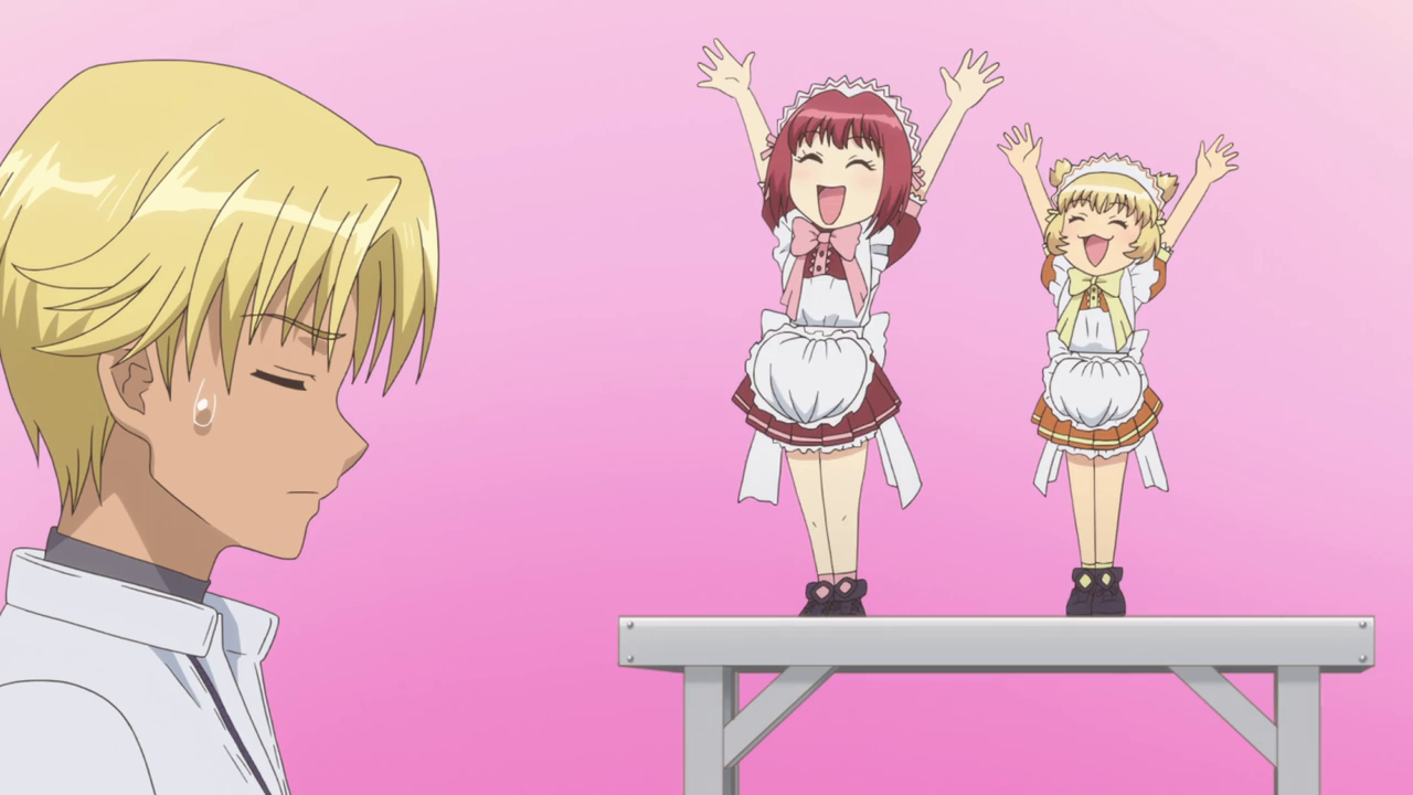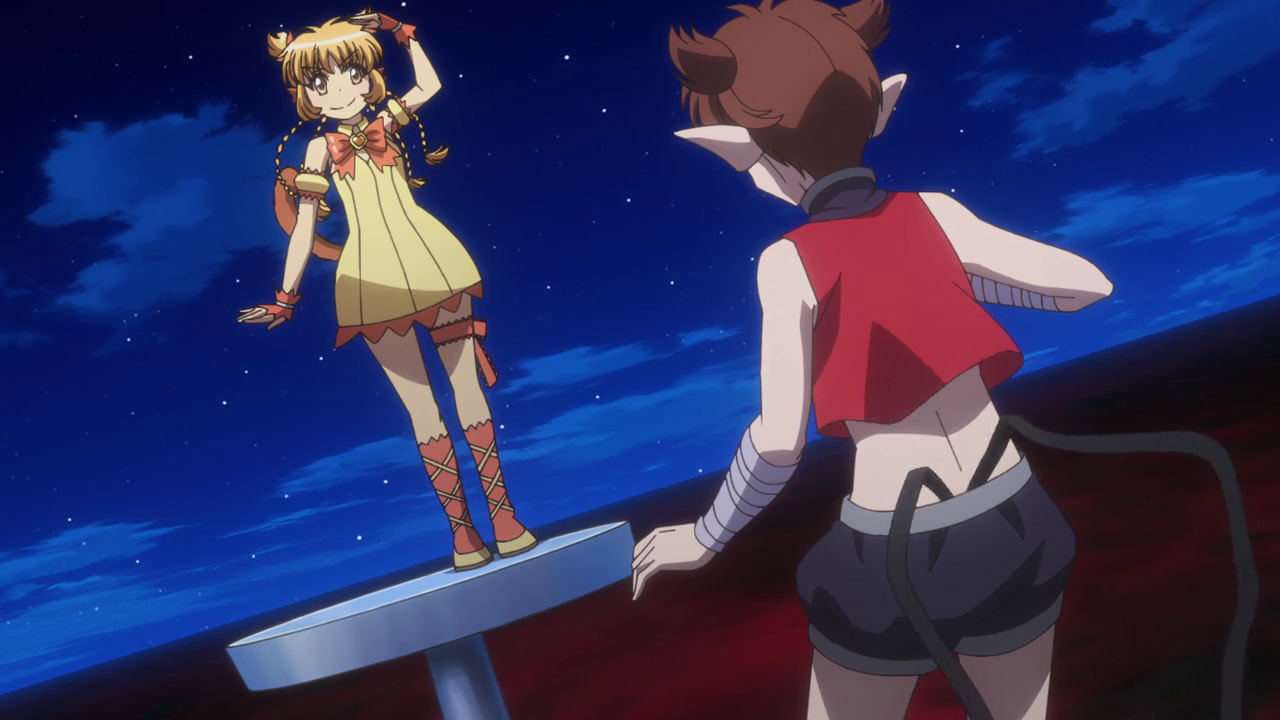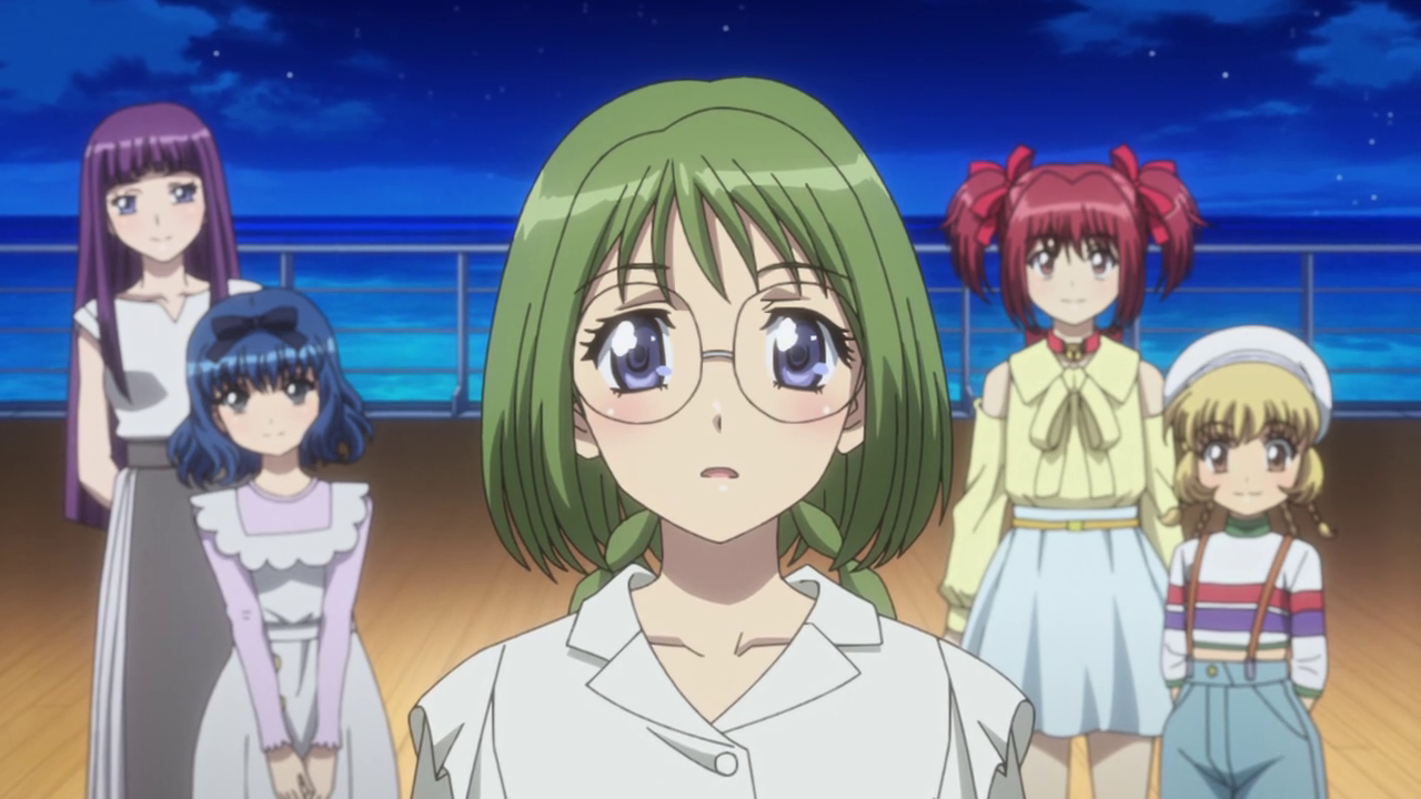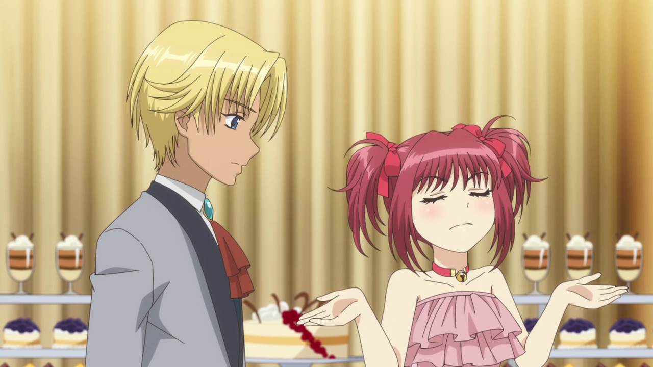 We had a fun setting on Ryou’s yacht because apparently he has one, where he’s throwing a get together to release the new desserts for Cafe Mew Mew and it’s a pretty fancy event. We meet Pudding’s siblings and they’re super adorable, and I thought it was cute that Lettuce sort of became another big sister to them, namely Huacha. The girls dress up in fancy dresses and Ichigo shares a nice dance with Ryou. But what’s this? Her heart is pumping and she thinks that she maybe likes him? I just realized that Ichigo sure has a lot of ships with three different guys. It’s pretty funny that she’s in the middle of all these romantic situations, but she did want more romance as a high schooler and she’s certainly getting it. This isn’t the first time Ichigo has had a doki moment with Ryou and I wonder how much more it’ll develop. It’s not like she knows him all that much so her infatuation is mainly on a surface level. Though…I can’t say her “love” for Aoyama is all that different. Ryou is just the handsome nice guy sometimes and I guess it’ll make any girl’s heart skip a beat, and that includes Lettuce now.