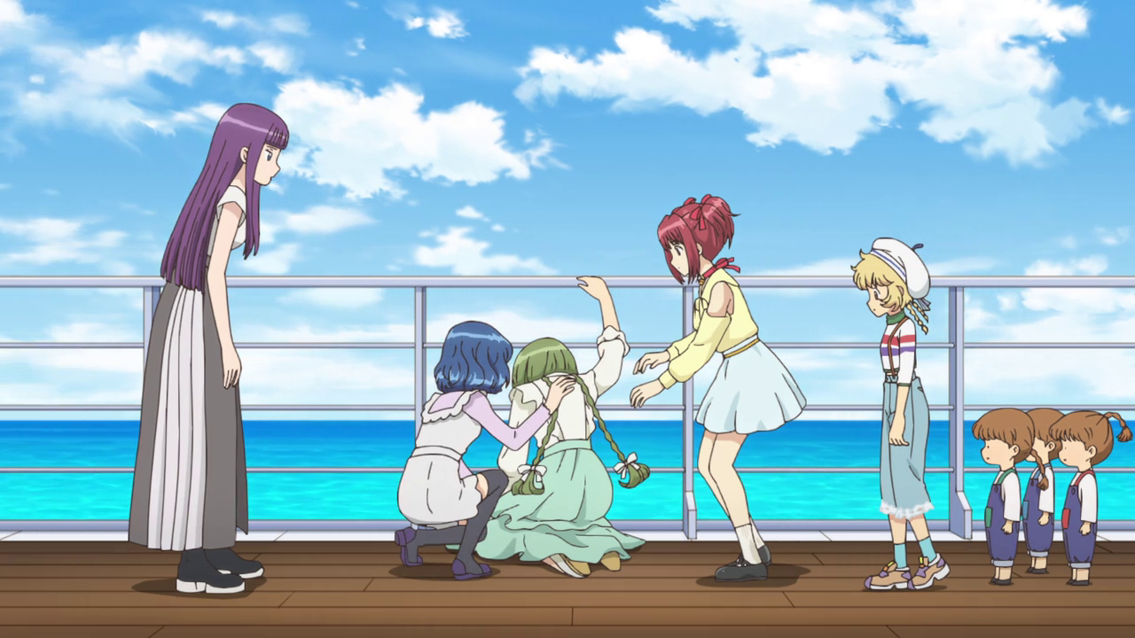 Throughout all this Lettuce is pushing herself and isn’t totally enjoying their little vacation. Ryou notices this and comes up to her, giving her a drink with a magic spell to help her out, though it’s just normal orange juice. This gives her the confidence she needs to believe in herself and save Huacha from the Chimera Anima. This was a fine episode for Lettuce, she did gain some confidence after she learned to not give up and put herself down. Ryou giving her that push was pretty sweet too, and that gave Lettuce develop a little crush on him it seems. Again, not sure if they’ll develop this into anything more since they’re teasing something with Ichigo too so it might get too messy. But I appreciate the moments when Ryou is just a nice guy looking after the girls, he seemed to genuinely worry about Lettuce.