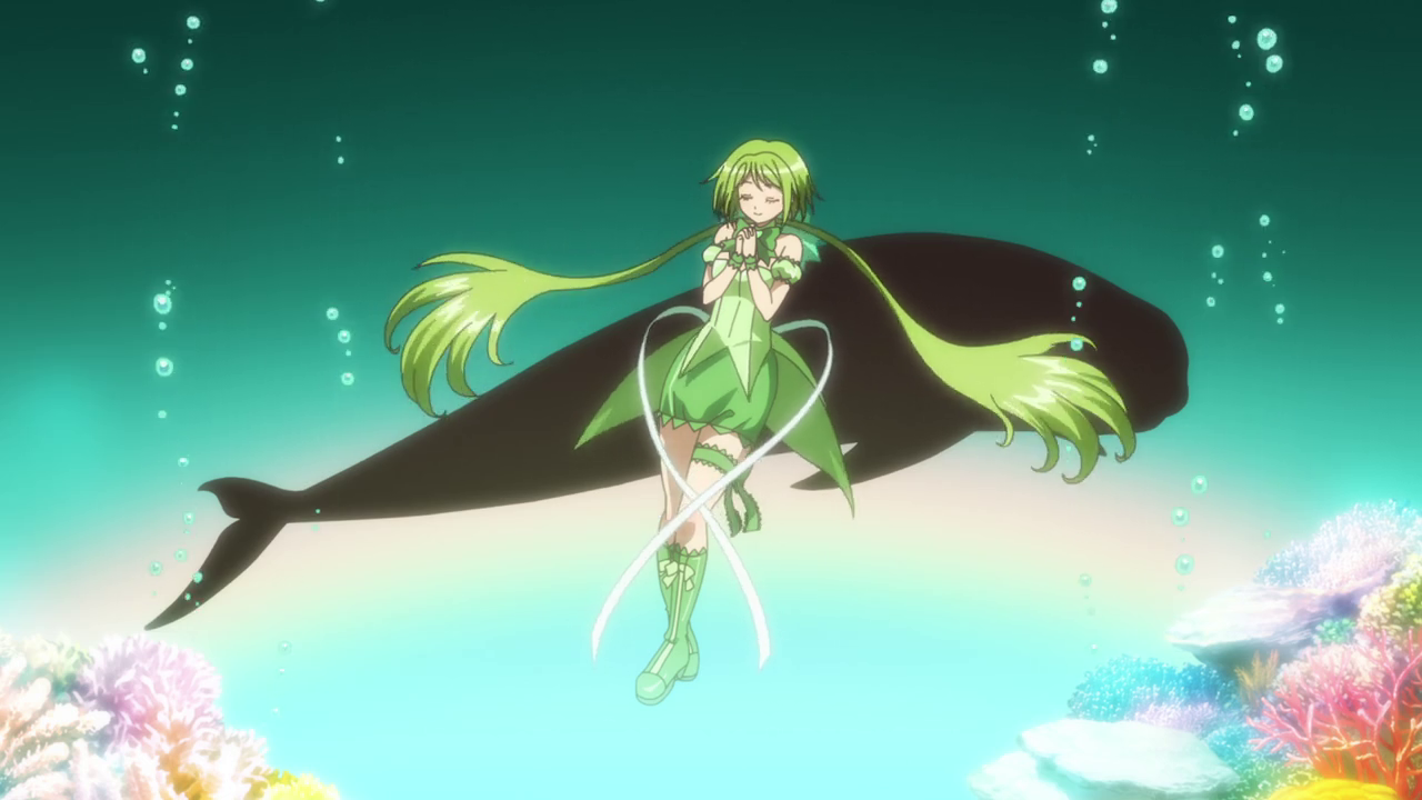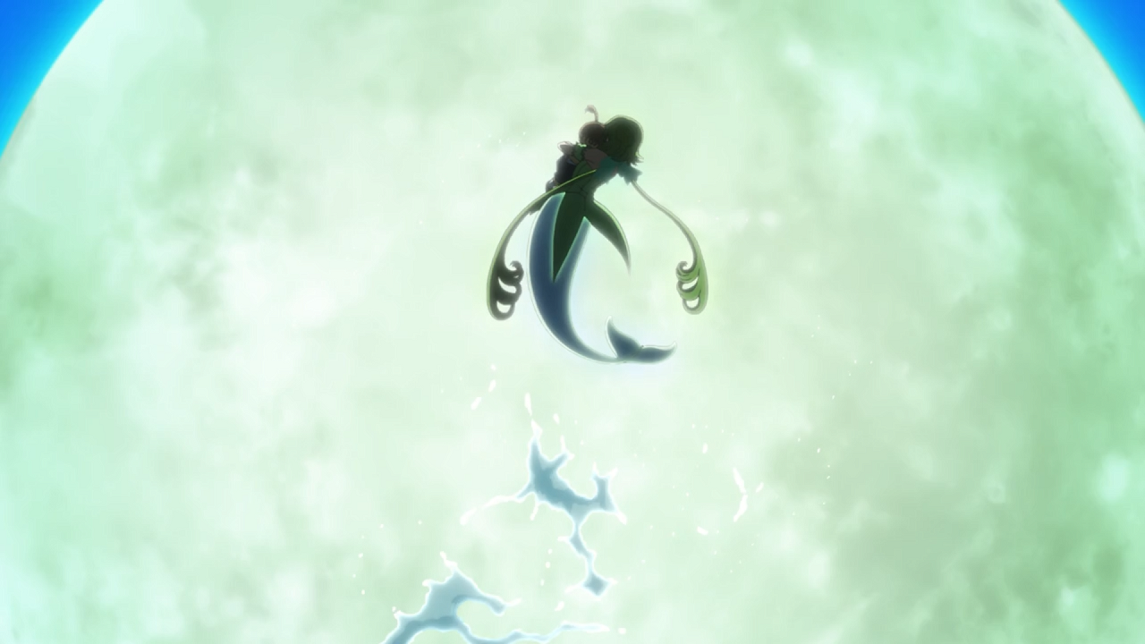 I’m so happy that we were finally able to see Lettuce’s entire transformation sequence, and I thought it was quite pretty. It sure took awhile to see it, which I think is really weird when it comes to a magical girl show since it’s a big deal to see the sequence when the character is introduced. So pretty unorthodox so far. It also seems like Lettuce may have gotten a power up based on the little cube she touched underwater. It seems to be pretty significant based on Ryou’s reaction at the end so I wonder what it is. I don’t think I remember ever seeing something like this back when I was a kid so this is at least interesting. I wonder if each girl is going to get their own power up in their own way. Usually magical girls get their power ups together so this would be a cool change. But all in all, this was an okay episode. I’m not sure I feel any different towards Lettuce than I did before, I think she’s still more or less the same for me. I do like her and I like seeing her be happier and confident at least.