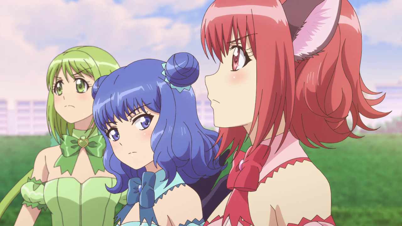 Now we know what it is Lettuce found, and that is Mew Aqua. Mew Aqua is going to be vital and it looks like there’s more around them that they need to search for in their battle against the aliens. There’s actually a lot going on on top of the Mew Aqua stuff, and that’s the fact that Mint’s been offered a business opportunity at a school in America, and the fact that if the girls take too long to defeat the aliens their DNA will combine with their animal DNA and they won’t be able to return to their regular human bodies again. I really like that as it makes the stakes even higher than they all thought. Sure having some animal features can be an inconvenience but turning into your animal is definitely a lot worse. Lettuce is obviously going to have the worst time with that, so now time is ticking for them to take down the aliens and Chimera Anima as fast as they can. And when it comes to Mint, I know she’s not going to take that opportunity and is just going to stay in Japan but it creates some drama I guess.