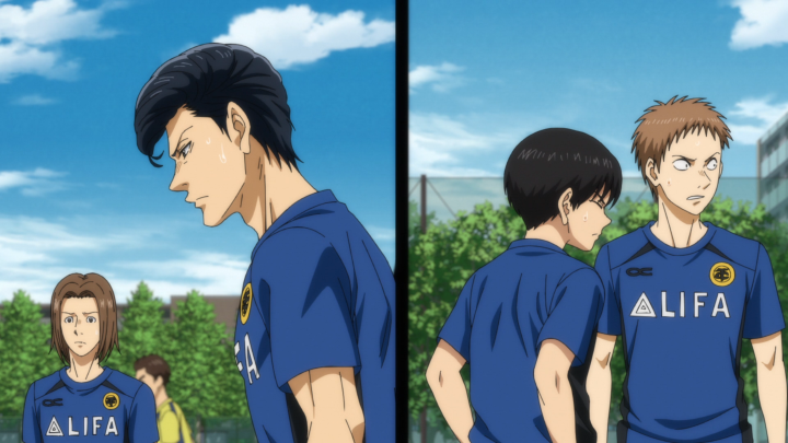 Of all the characters for Togashi to have bad blood between, I never would have expected that it would have been Kuroda. I really liked Kuroda earlier in the series because he was someone who was able to break down some barriers and work with other players. Granted, he’s kind of sneaky about it, but it’s not as if he’s being malicious about it. This episode definitely showed that priorities are just different for all the players. The ones that grew up in Esperion are all hyper focused on going pro and at the end of the day, they are going to do what they can to get there. Togashi (and by extension Aoi) hasn’t grown up in this environment. Togashi wants to go pro, but for him going pro focuses on scoring and winning.