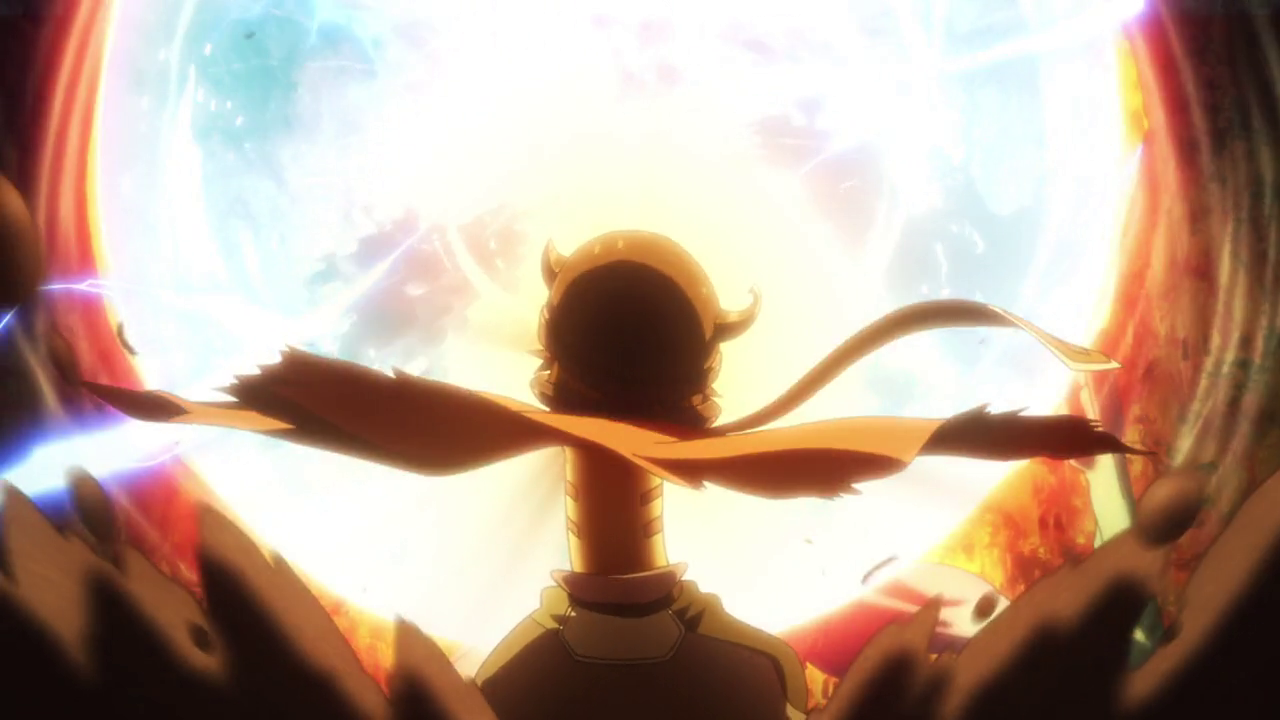 Faputa’s reign of terror begins. Reg’s promise as I thought was to help her destroy the village. She cannot go into the village because of the laws and she knowing Reg wouldn’t do it for her since he’s so kind, she wanted him to head inside and “rewrite” the laws so she could enter. What they were referring to was the Incinerator, that would be able to blast a hole inside the village that would be able to let her in. And then her plans to eradicate the village would start. Reg comes back to the village to inform everyone and all of a sudden the big monster from before with the sword appears and attacks Reg. Unfortunately, Reg HAD to use his Incinerator to protect himself and everyone else else from Juraimoh, as he attacked Reg for the piece of Faputa he was carrying, which was the piece of her arm that she had ripped off. Doing that, Reg had blasted a giant hole in the village. Now that Faputa’s able to get inside the village, her reign of revenge starts now. The music and framing in this part was so well done, and Faputa’s voice deepening was unusually scary. Her monologue was pretty unsettling too and it left on a good cliffhanger…for the carnage that we would see.