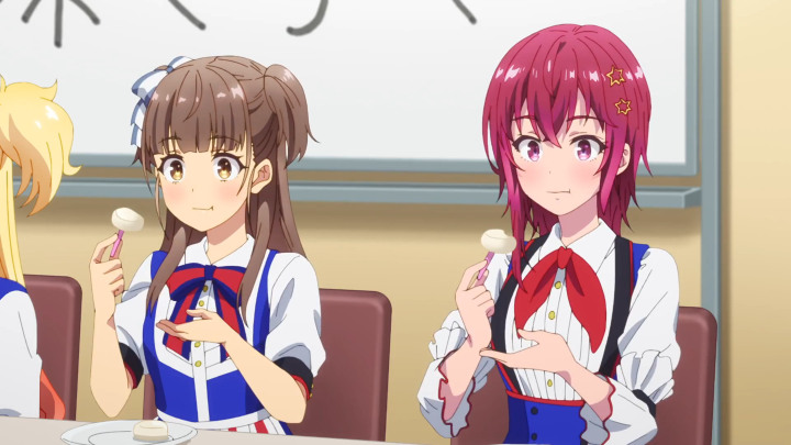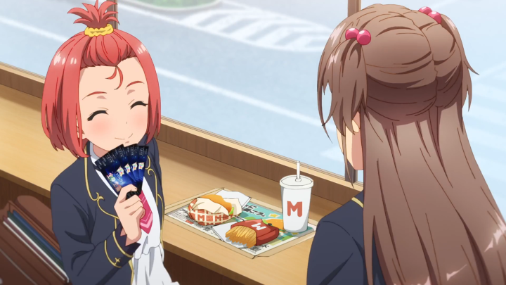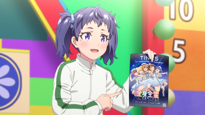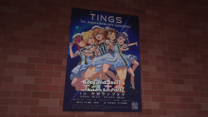 We pick up where we left off – the girls just finished their first performance with Haru performing to her true authentic abilities and TINGS popularity starts to grow. At this point it seems like their tickets for the Nakano Sun Plaza are going to see out in no time. Well… turns out things aren’t that easy and there is a bit of work that needs to happen before they can sell the remaining half of their tickets. I wish we would have had more interactions between the girls, but I think this episode did a really good job of showing us how much they’ve grown. Kyouka is more confident in interacting with people and having fun and Rio is able to eat green peppers on camera without crying! That’s a win!