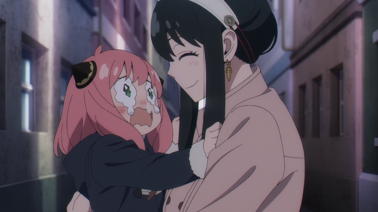 We start right where we left off with Yor kicking the ever loving crap out of that one guy’s face, successfully rescuing Anya. And this was probably the first time in a while where Anya’s life was in real jeopardy since the first episode, so I can hardly blame her for just bursting into tears. But it was equally hilarious to have her cry even harder after being terrified of Yor’s mama bear’s face XDDD. Though I legit felt emotional when Yor hugged Anya in relief that she was okay. I’m also glad that Anya actually told Yor the situation since she actually heard the plans out loud this time around. I feel like the two have been getting closer through out the season and it’s very touching to see how both have come to really care for the other… even if Yor still scares Anya lol.