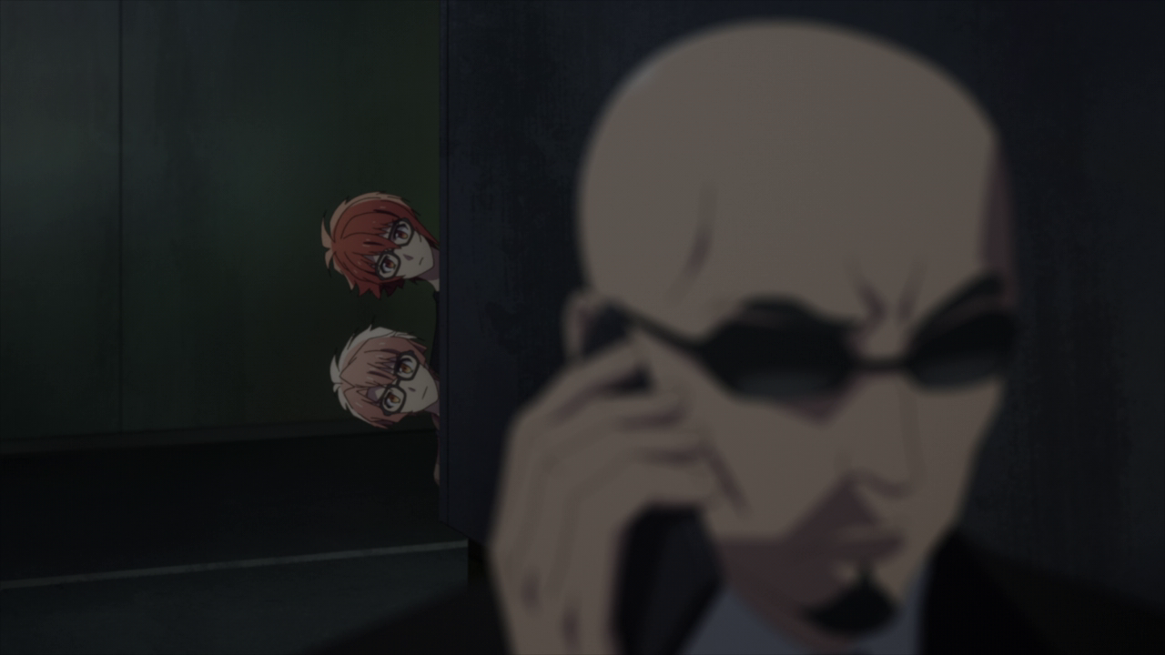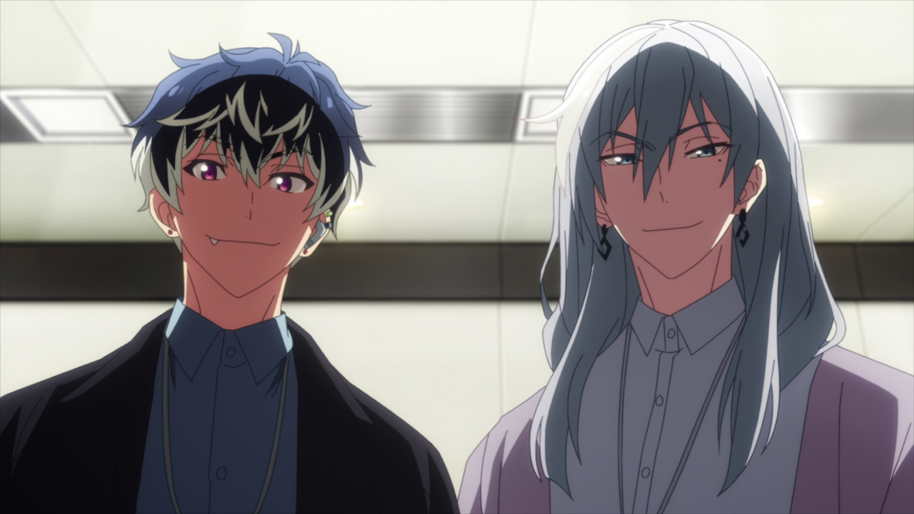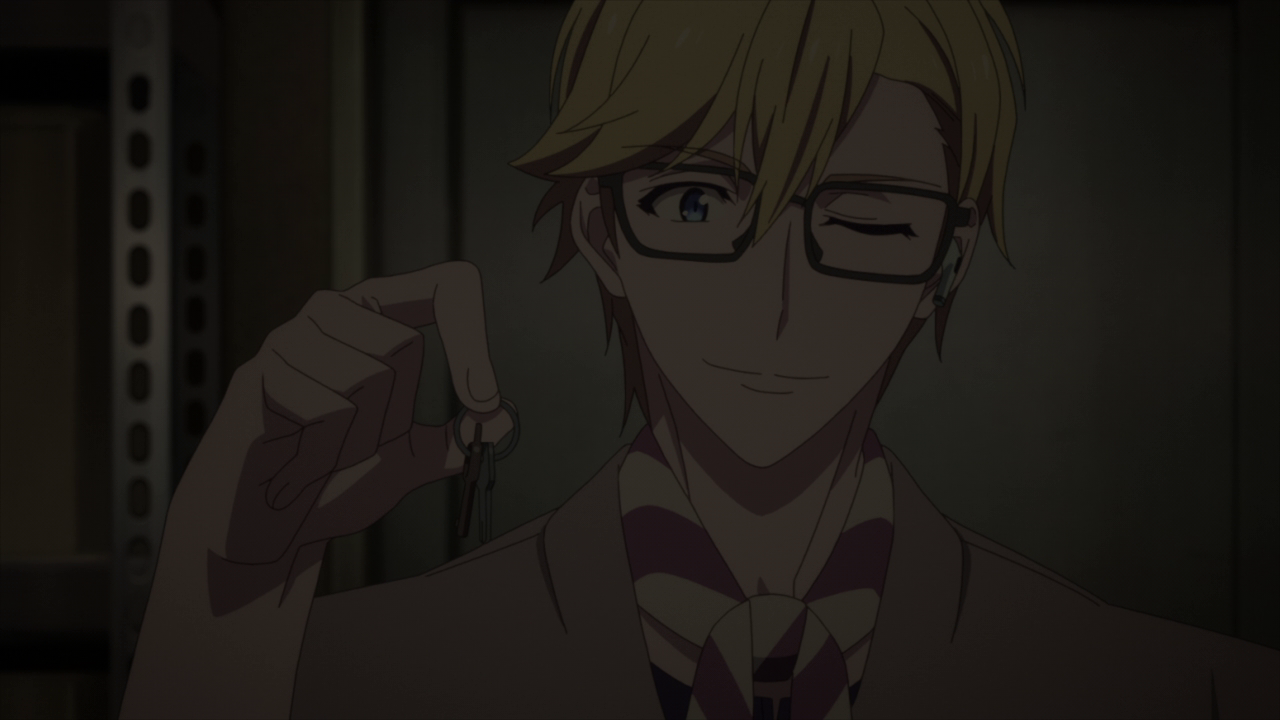 The group separates to try and find where Tsukumo took the Trigger members and despite it being such a stressful and serious moment, there were just so many moments that made me laugh because of how absurd it was. Like, guys… THIS IS A SERIOUS SITUATION STOP MAKING ME LAUGH. We start with Re:vale up to shenanigans by tricking the front desk guy about leaking juicy info… only to tie him up and interrogate him. I absolutely lost it when Yuki just slams the trophy in front of him as a threat to get him to talk. Yuki and Sogo just exhibit the same killer energy all with a smile XDDDD. Though I think the group that had me laughing the hardest and caused the most amount of hilarity with their antics. Especially when Tamaki and Sogo “glowered” at that one guy on Yamato’s prompting. And the three of them just coming in with sunglasses on… there were just so many parts with them where I had to pause the episode because I was losing it. Also there are times where I just forget that Yamato is a good actor so when he starts using his abilities I’m always taken aback for a moment lol.