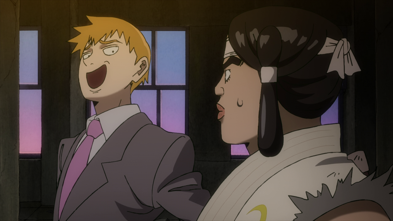 Here I thought they were just repeating the same “psychic” spiel as they did in the previous episode. But then when it panned out differently, I had to do a double take. You really had me going there, Mob lol. We get an introduction to “Yokai Hunters” which I’m still kind of confused by since espers obviously exist. Are Yokai Hunters just regular people without powers who take on spirits and just refer to them as Yokai or are there actually differences between Yokai and evil spirits? It did feel a bit weird to introduce that now so far into the series, especially when it felt like it didn’t amount to much in the end. It just opened up more questions. Maybe they’ll explain it more later, but to me it felt a bit strange to have this whole subplot about the Demon King or something like that.