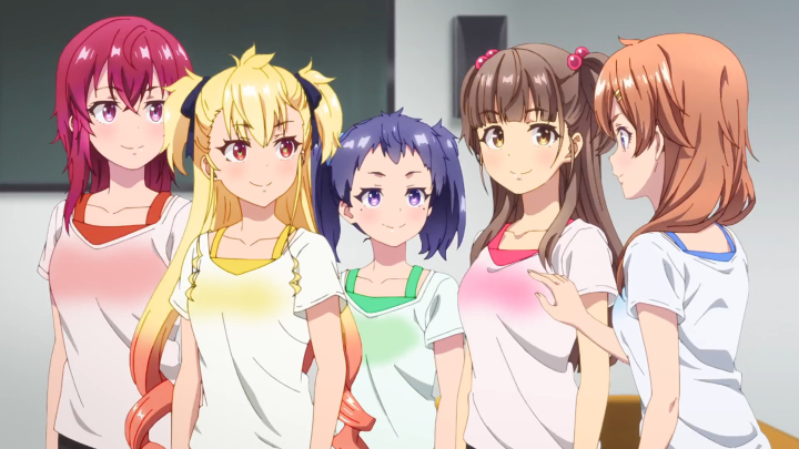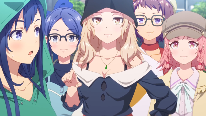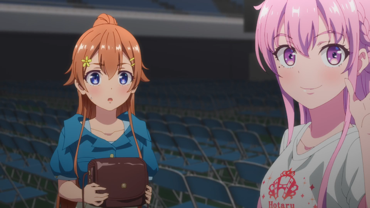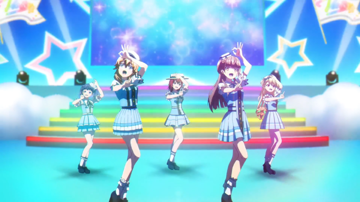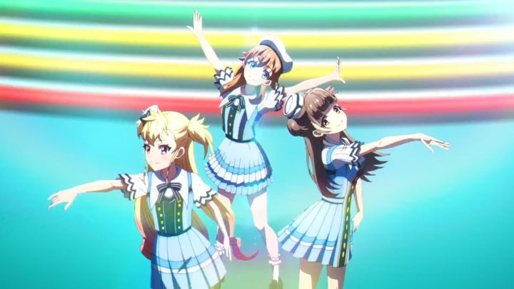 Truly, the characters made this anime and by that, I mean the original three girls we were introduced to: Haru Nabatame, Kyouka Tamaki, and Rio Seibu. They all had unique and interesting personalities from the start and we were able to dig deeper into their insecurities early on, which made these characters so relatable and pushed my desire to cheer for them. Haru is your typical genki girl protagonist. She keeps the energy high and generally moves throughout her spaces with excitement. Early on, we don’t see her get mopey or sad about her circumstances and for the other girls she does keep the morale high. She is earnest in her desire to become a shine post for everyone watching. Of course, her biggest fear is outshining all those around her. A fear which came from another group she was previously in. We get to watch her slowly find her true idol-self and it does feel satisfying when she is able to get on stage and give us everything that she’s got.