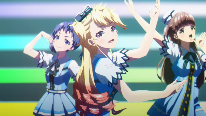 Truly, the characters made this anime and by that, I mean the original three girls we were introduced to: Haru Nabatame, Kyouka Tamaki, and Rio Seibu. They all had unique and interesting personalities from the start and we were able to dig deeper into their insecurities early on, which made these characters so relatable and pushed my desire to cheer for them. Haru is your typical genki girl protagonist. She keeps the energy high and generally moves throughout her spaces with excitement. Early on, we don’t see her get mopey or sad about her circumstances and for the other girls she does keep the morale high. She is earnest in her desire to become a shine post for everyone watching. Of course, her biggest fear is outshining all those around her. A fear which came from another group she was previously in. We get to watch her slowly find her true idol-self and it does feel satisfying when she is able to get on stage and give us everything that she’s got.