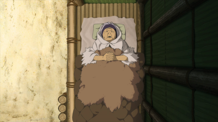 This season starts off 40 years after the ending of season one. Some characters that we used to know have passed due to their age, while others are still around and kicking. But what’s worse, is that everyone who I’d like to come back: March, Gugu, Parona, Pioran, and unnamed boy won’t make a reappearance as themselves… because as we all tragically know… they are dead dead. BUT! That does mean the one who killed two of them, Hayase, is also dead! Woo!! Of course, the anime won’t let us have that win because we are introduced to a new character this episode. Generally, meeting new characters can be a lot of fun, but truthfully I share Fushi’s same hesitation about her. Afterall, she’s the granddaughter of Hayase and a whole brand new problem. Apparently a Nokker has been a generational heirloom which is a whole lot of fun. No offense, but if I was passed down a painful, bloodsucking parasite that was a giant mass on my arm I don’t think I would call it something important to the family. I’d probably be rather upset about it. Current analysis: Hisame is an odd child who idolizes her grandmother a little too much.
