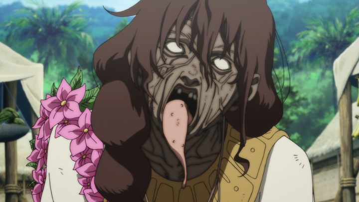 Unfortunately, we don’t actually get to see a whole lot of Nokker fighting this time around. Most of the episode was focused on Hisame’s family infatuation with Fushi, and Fushi talking with the black figure. But! Fushi seems to be entering his angsty teenage phase. Remember last season when he really couldn’t formulate sentences? Well, he’s learned a lot since we’ve been gone, but now he’s at least able to let out his frustrations with huffs, and kicks to the ground. But as far as this village goes, we manage to make it safe and find out that Hisame and the Guardians are basically creating a religion around Fushi. I don’t think Fushi fully understands the concept of religion yet, but even if he does, I don’t think he would want to be perceived as a god. Thankfully, we get to meet someone who knows when to call BS on this nonsense. FELLAS TONARI IS BACK!!! And she’s here to put Hisame in her place. Shout out to her for surviving 2 rounds of poison. To be honest, I’m a little nervous for the next episode. I hope Hisame’s Nokker doesn’t take her out, because she’s already been through so much, it would genuinely suck if she died here before being able to do anything. Here’s to hoping the next episode treats her well!